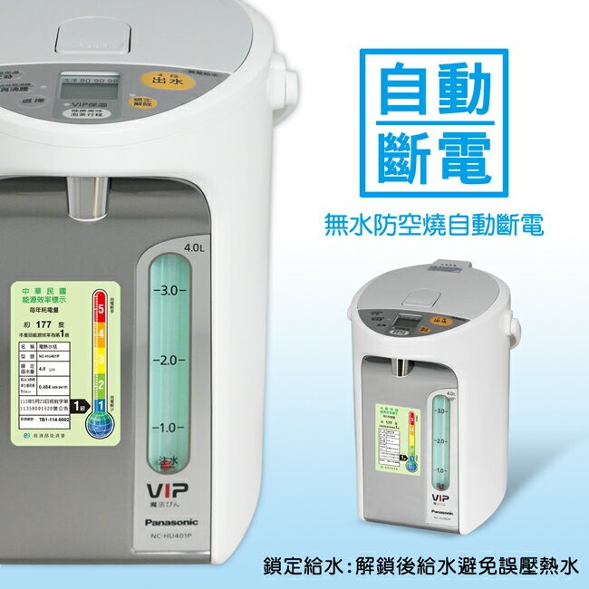 *商品型號︰NC-HU401P *電源︰110V/60Hz *耗電量︰925W *保溫耗電量︰98保溫21瓦/時、90保溫18瓦/時、80保溫15瓦/時 *商品尺寸︰24.5x32.6x33.8cm *包裝尺寸︰34x25.5x37cm *容量︰4.0L *機體重量︰3.3KG *顏色︰銀灰 *產地︰泰國 *檢驗碼︰R31417 *國際條碼︰4549077656452