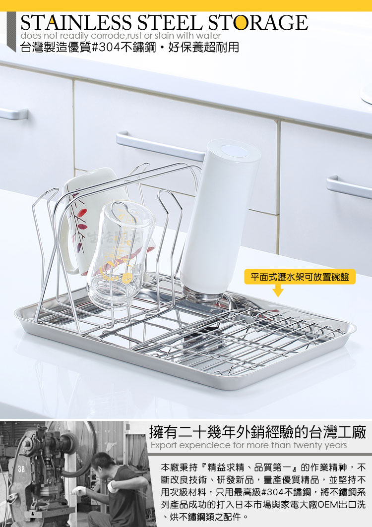 採SUS304 (18-8)高品質不鏽鋼製造,無生鏽疑慮,為同質性產品能找到的最高使用材料等級 ,製造商為已有二十多年經驗的外銷廠商,品質保證。