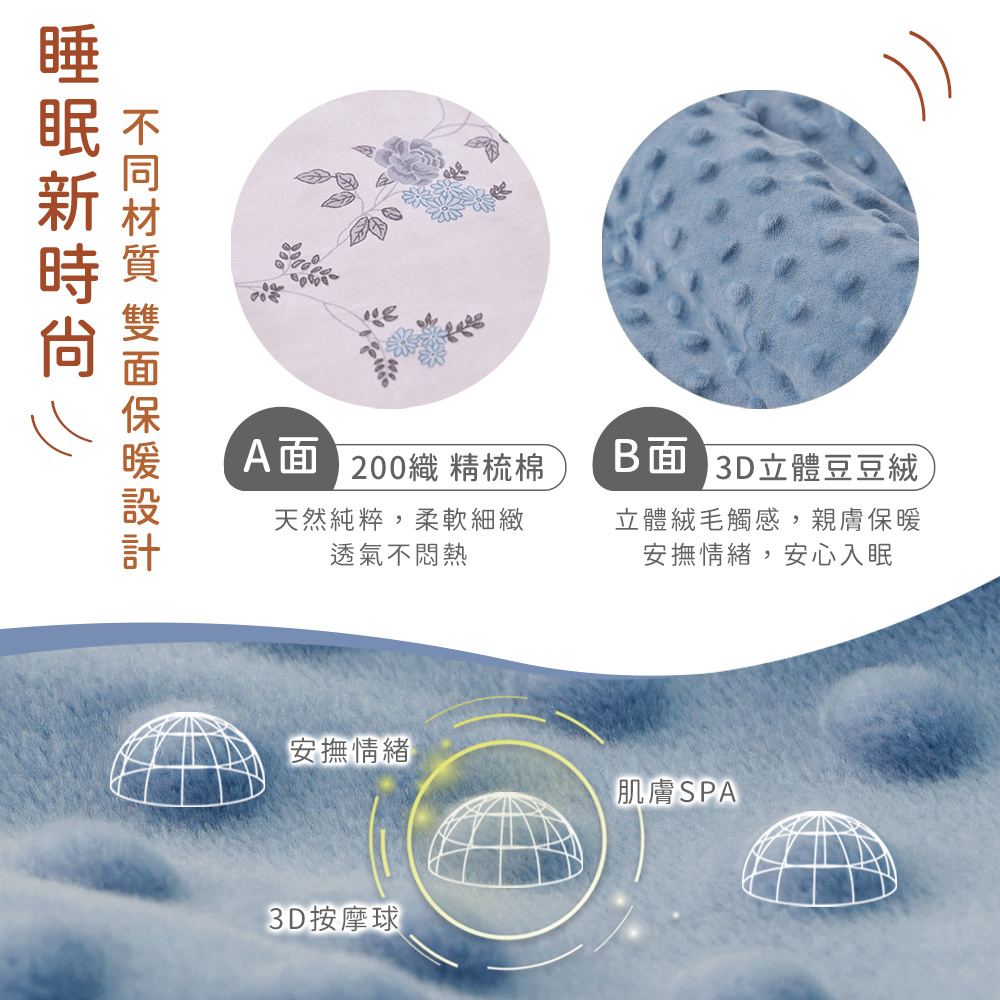 ◇商品規格 ▪ 內容物:Heat Fi 可水洗韓系純棉豆豆絨被x1 ▪表布A面:100%純棉(200織精梳棉) ▪表布B面:100%聚酯纖維(3D立體豆豆絨) ▪填充物:20%大豆纖維+80%聚酯纖維(羽絲絨) ▪ 尺寸: 150x200cm (±5%) ▪ 重量: 2.3KG(±3%) ▪ 產地:中國 ◇注意事項 ▪ 洗滌方式:30度可水洗/不可漂白/不可熨燙/不可烘乾/不可乾洗 ▪ 清洗時,請勿將洗劑直接倒於布料上,且確保清潔劑完全溶解於水中再放入,以免造成布料褪色 ,洗後置通風處自然陰乾即可。 ▪ 洗滌時,以低溫柔洗模式機洗,請務必使用洗衣袋,切勿使用衣物柔軟精、漂白劑、香氛劑洗滌,商品會導致顏色不均或嚴重褪色。 ▪ 個人衛生用品,如經拆封使用、下水洗滌、沾染各種氣味或拆解以致缺乏完整性及失去再販售價值時,恕不接受退換貨 。 ▪ 本商品不含拍攝道具,請以「產品內容」為主。 ▪ 網頁圖片因拍攝關係,與實品略有差異,實際顏色以出貨商品為準。