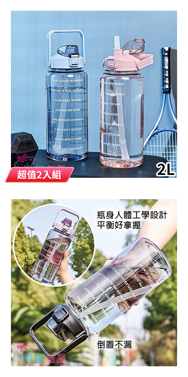 DOLEE 潮流吸管運動水壺2L(顏色隨機出貨) W61 超值2入組 ■ 倒置不漏 ■ 瓶身人體工學設計,平衡好拿握 ■ 吸管飲用杯口,飲用方便 ■ 手提杯蓋設計,攜帶便利 ■ 自用送禮都適用 ■ 環保愛地球