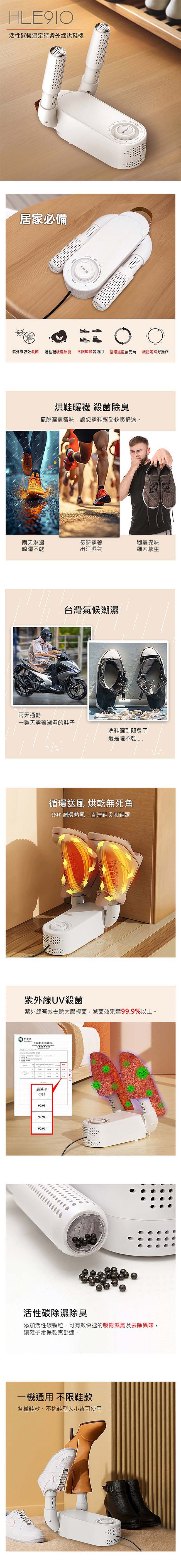 DIKE 活性碳恆溫定時紫外線烘鞋機 HLE910WT 超值二入組 ■ 360度零死角循環出風口 ■ 強效紫外線殺菌與除臭除濕活性碳顆粒 ■ 各種鞋款、鞋型、襪子及織品也可烘 ■ 120分鐘無段定時 ■ PTC陶瓷加熱溫度穩定安全 ■ 耐高溫阻燃材質 ■ 無段式定時,120分鐘內可自行設定使用時間 ■ 摺疊設計,收納方便 ■ 皮質提把,攜帶方便