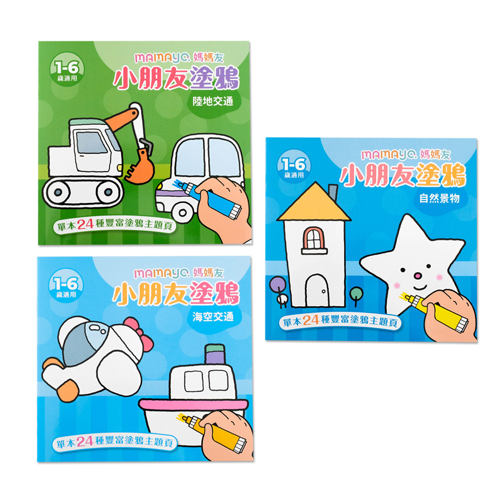 mamayo 小朋友主題塗鴉本三入組(陸地交通/海空交通/自然景物)1-6歲適用5,940 點 或 3,580 點 + 118 元