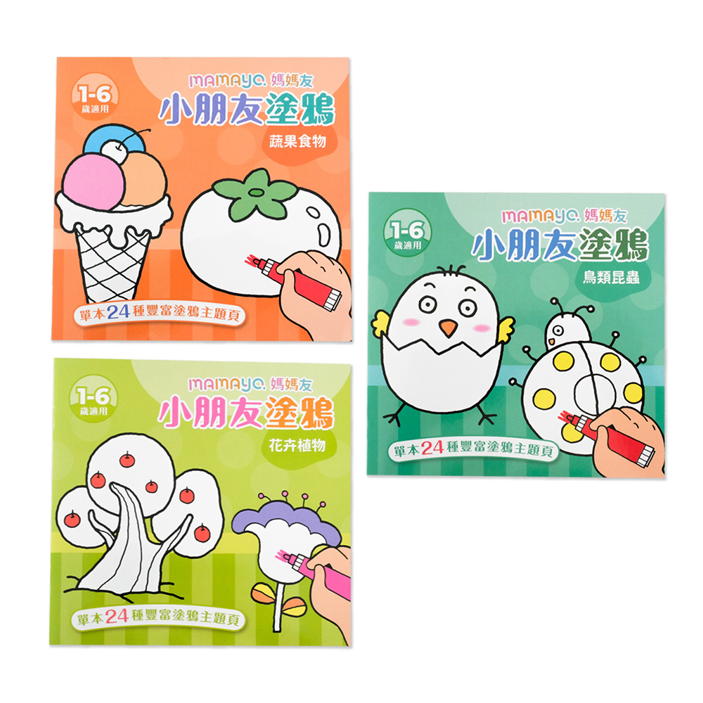 mamayo 小朋友主題塗鴉本三入組(蔬果食物/花卉植物/鳥類昆蟲)1-6歲適用5,940 點 或 3,580 點 + 118 元