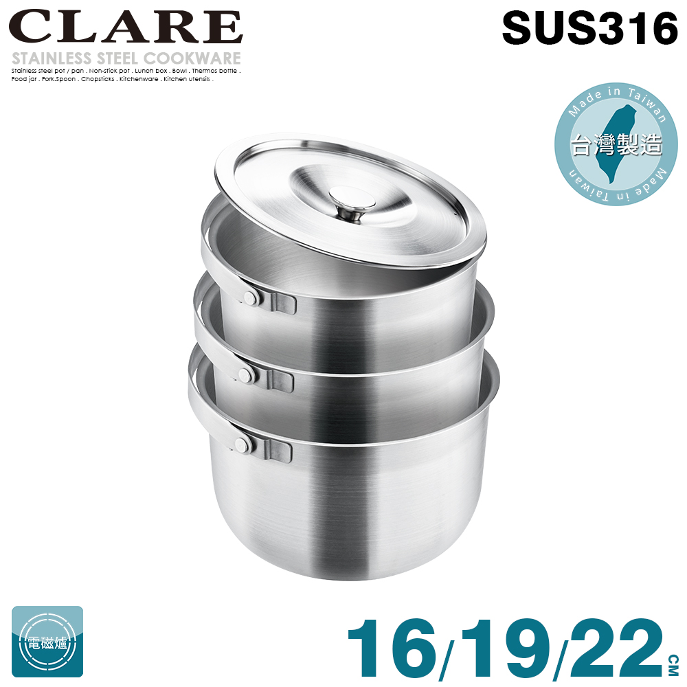 【CLARE 可蕾爾】白金鋼316調理鍋3入組50,000 點 或 20,000 點 + 1,500 元