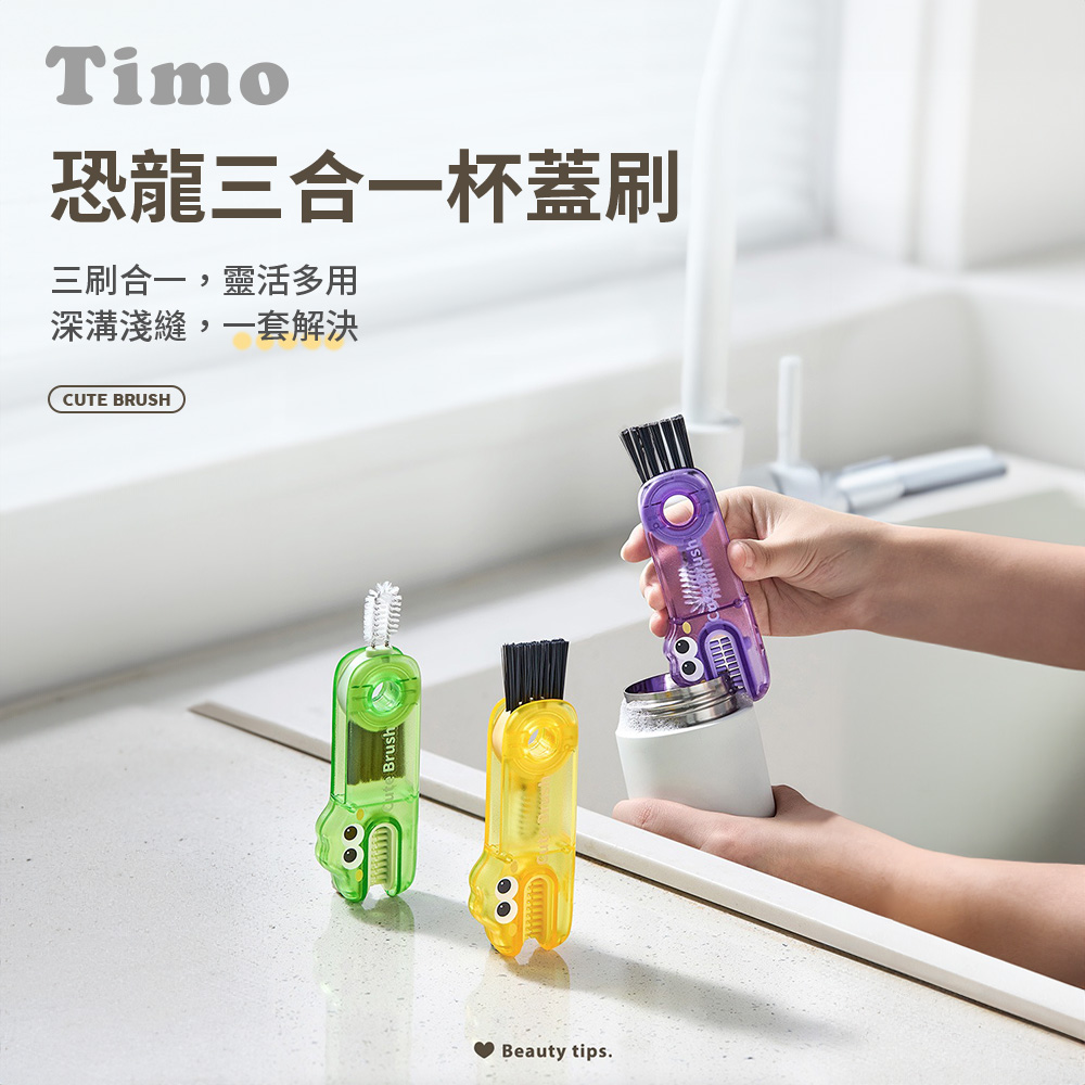 【Timo】恐龍三合一杯蓋刷2入 奶瓶杯口清潔刷 保溫杯縫隙清洗5,800 點 或 2,000 點 + 190 元