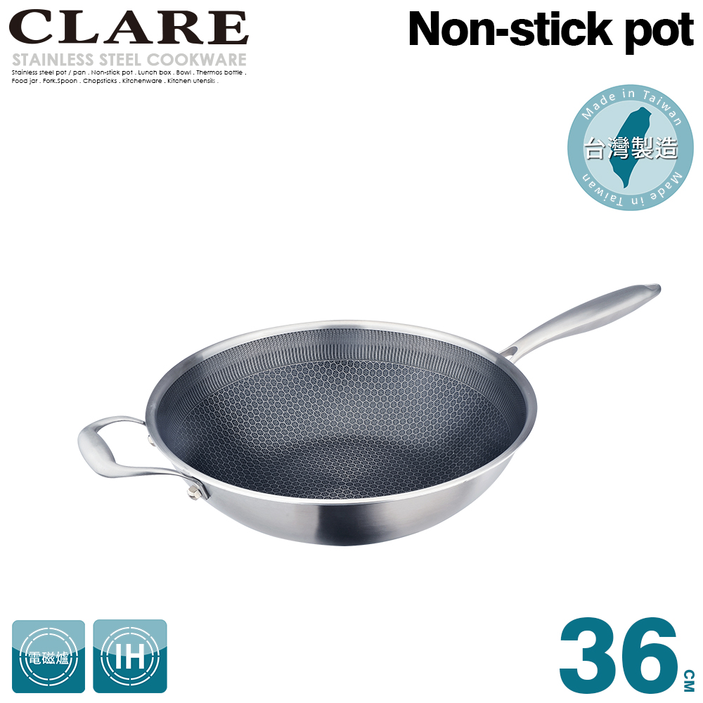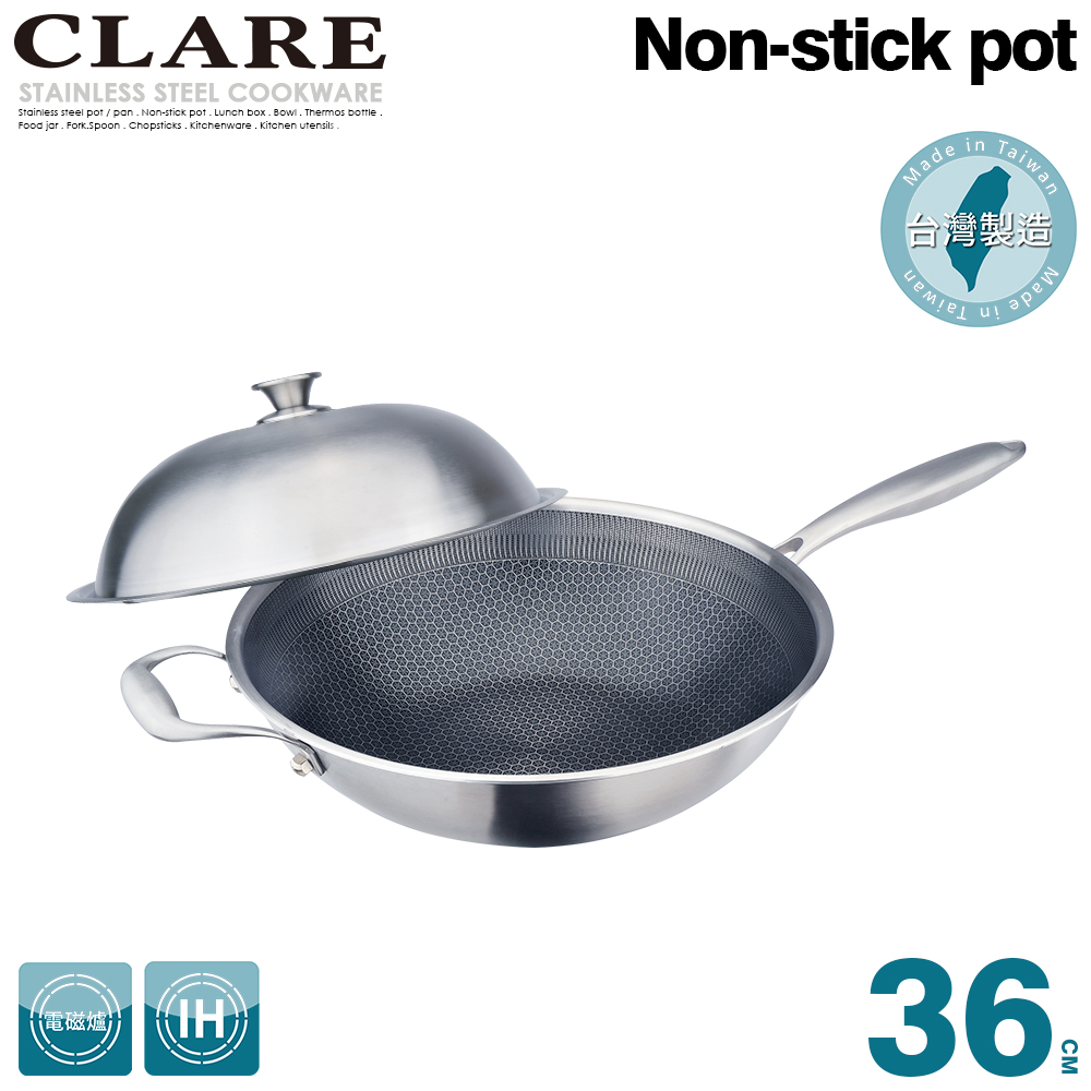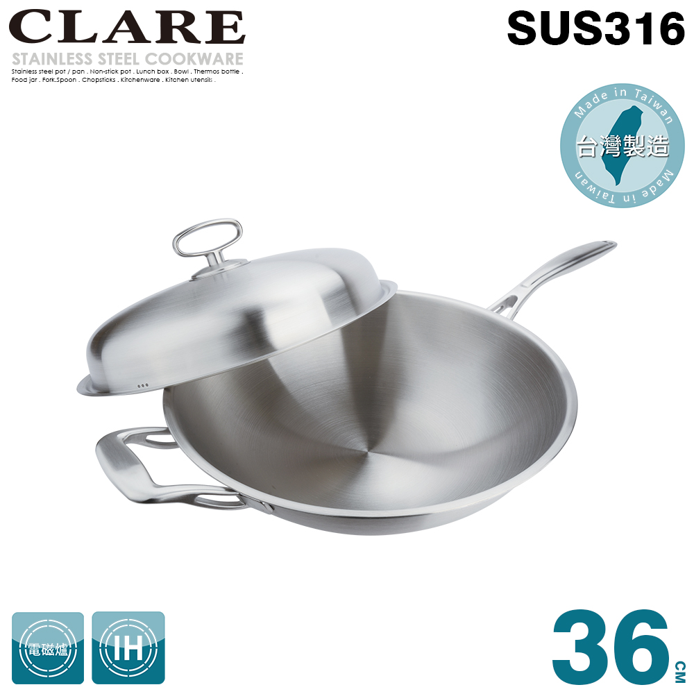 【CLARE可蕾爾】典鑽316不銹鋼不沾炒鍋36cm附蓋50,000 點 或 5,000 點 + 2,250 元
