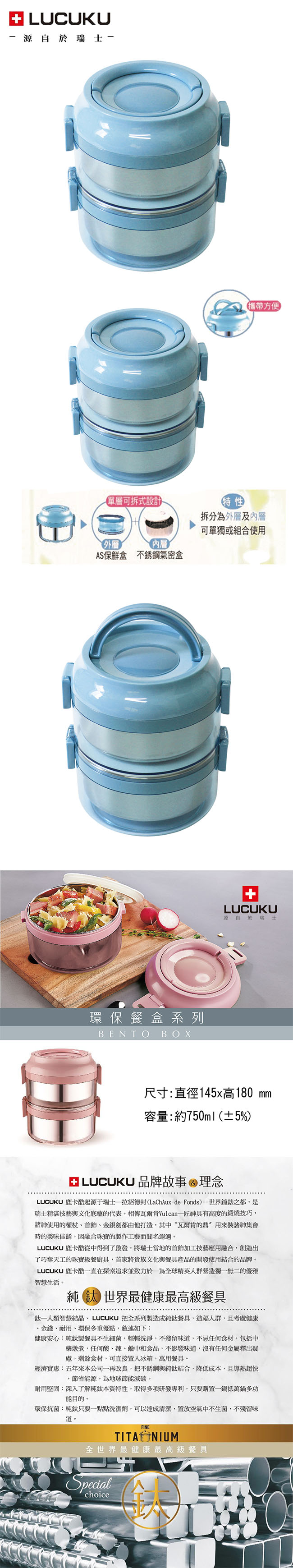 瑞士LUCUKU 304多用途雙層保鮮便當盒提鍋750ml FA-037 ■ 外出攜帶方便 ■ 可當便當盒、隨身食物碗、露營餐盒 ■ 隱藏式提把,好收納 ■ 拆分為外層及內層,可單獨或組合使用