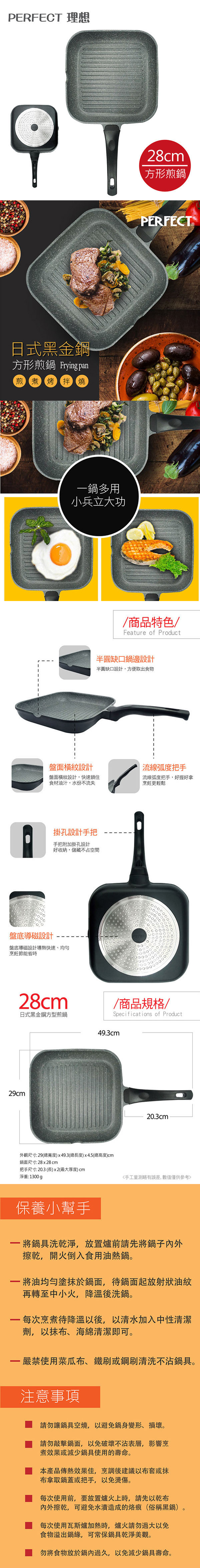理想PERFECT 日式黑金鋼方型煎鍋28cm IKH-25228
