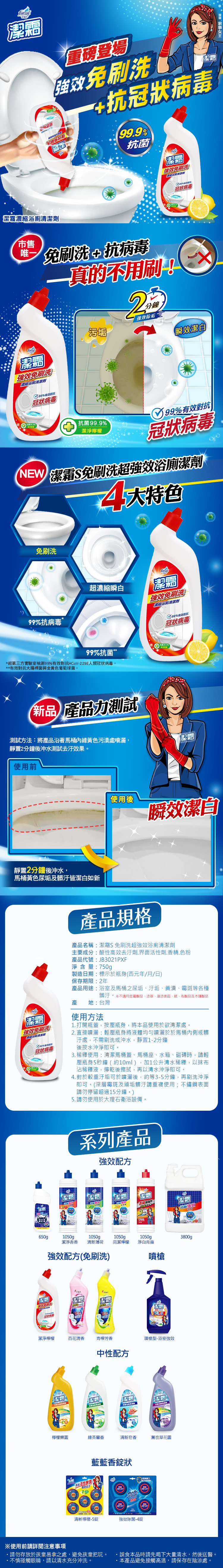 潔霜S免刷洗 強效浴室廁所馬桶清潔劑 750g/瓶-12瓶/箱