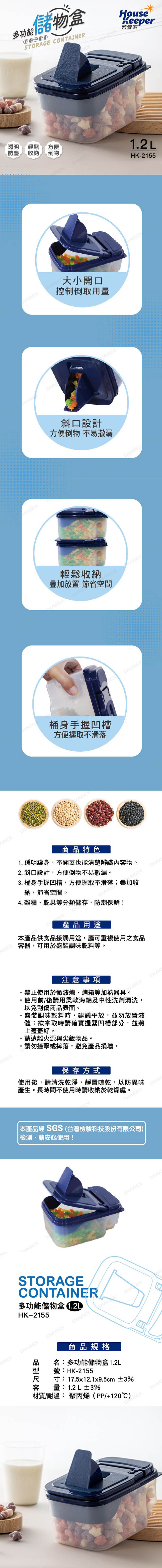 妙管家 多功能儲物盒1.2L(斜口+手握凹槽設計) HK-2155 ■ 透明罐身,不開蓋也能清楚辦識內容物 ■ 斜口設計,方便倒物不易撒漏 ■ 桶伸手握凹槽,方便握取不滑落;疊加收納,節省空間 ■ 雜糧、乾果等分類儲存,防潮保鮮