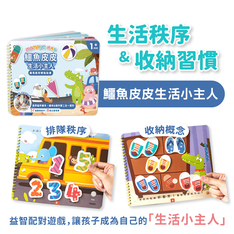 針對不同學習領域獨家設計 提升色彩美感的~枕頭王國 認識幾何圖形的~形狀泡泡浴 培養情緒認知/穿搭練習~魔法櫃的秘密 培養關注觀察/美感教育~森林裡的影子魔術師 培養生活秩序/收納習慣~鱷魚皮皮要去海邊 培養生活習慣/時間觀念~好習慣的鱷魚皮皮