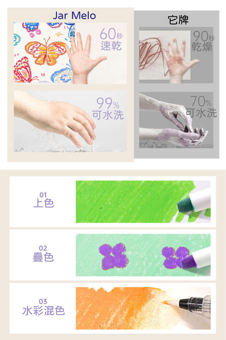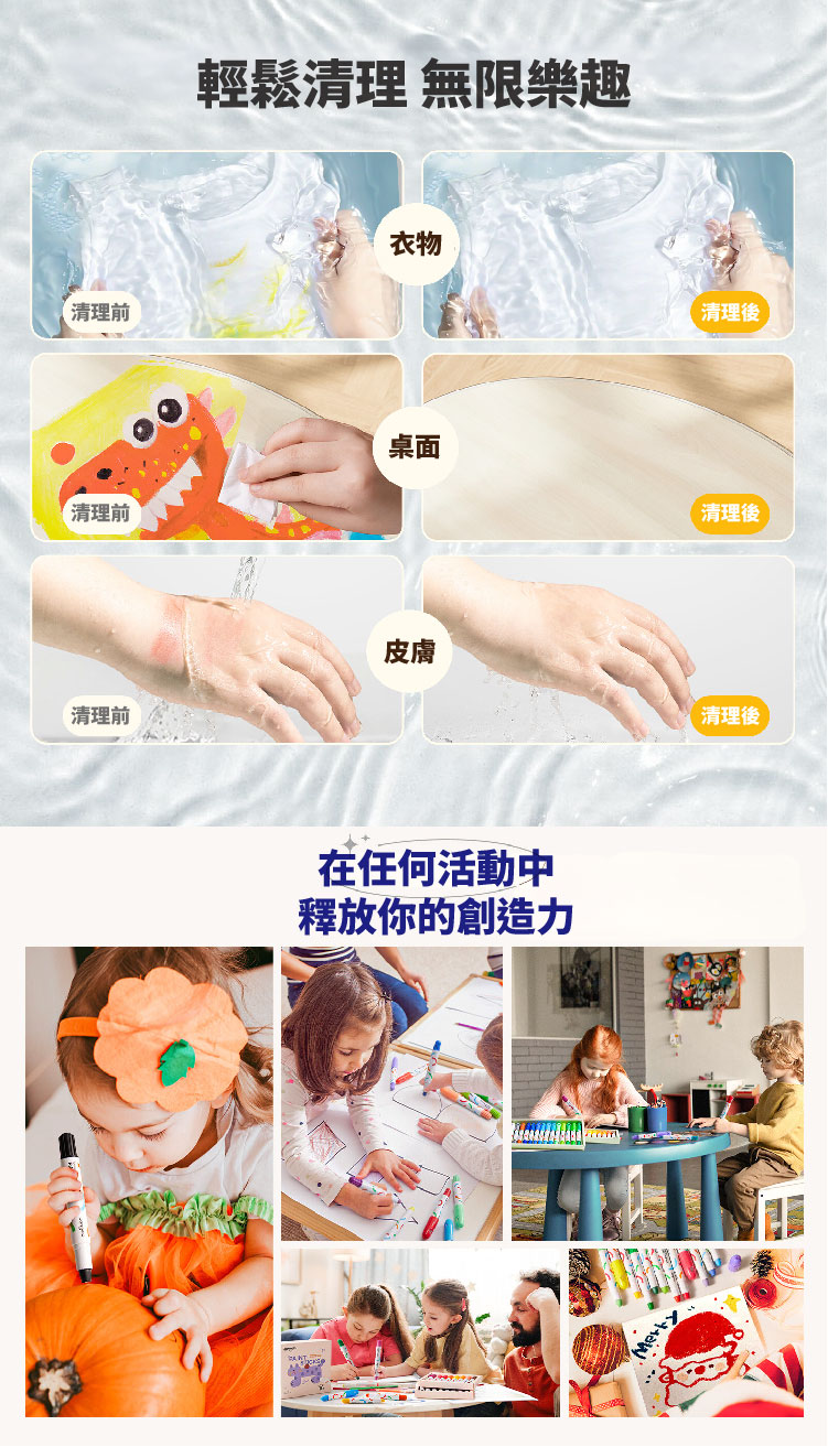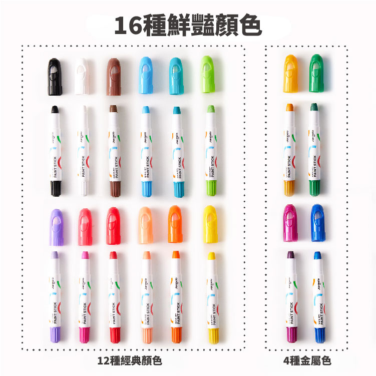 【品名】可水洗創藝蛋彩筆(16色) 【材質】甘油、植物性染料 【年齡】1歲以上 【尺寸】16.5 x14.8 x4.2 公分 【包裝重量】500 公克 【產地】中國 【安全標章】歐盟CE,美國AP