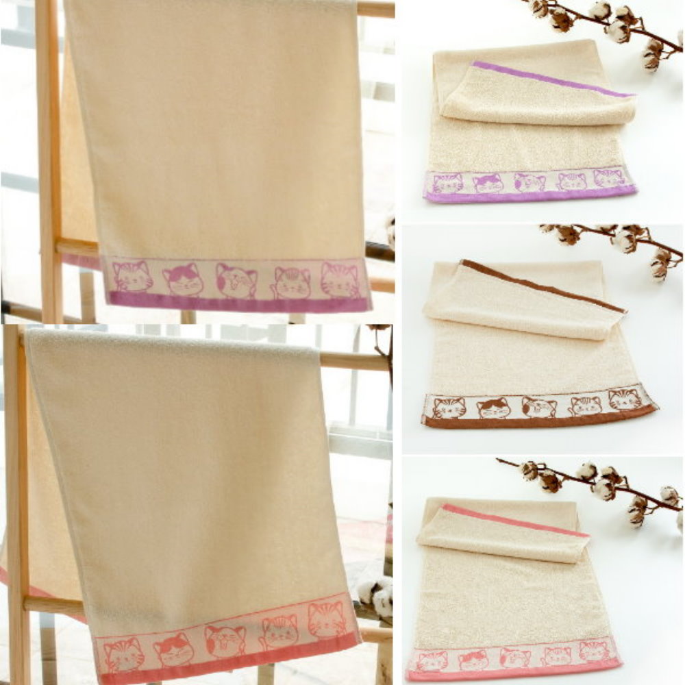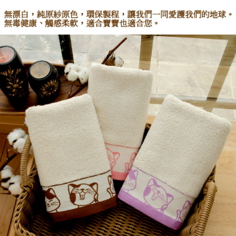 有機棉.福氣Q貓咪緞條毛巾-咖啡緞(2條組)【台灣興隆毛巾製】