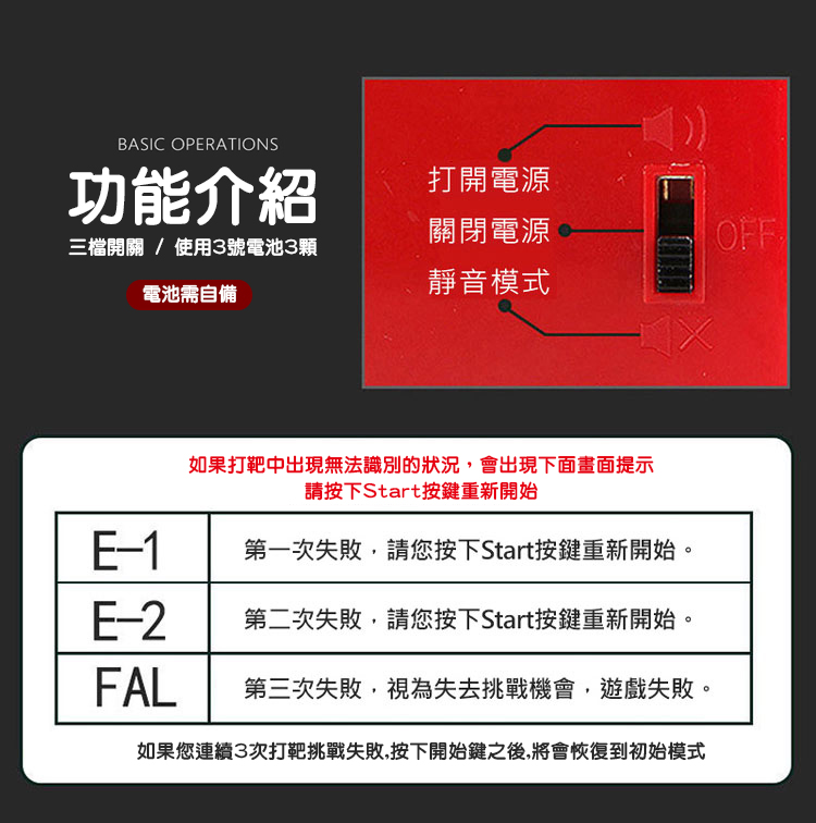 注意事項: 1.本產品使用3號電池x3(需自備) ※請使用一般碳鋅電池,勿使用高電力的鹼性電池或充電電池 2.商品尺寸/顏色可能因手工測量及拍攝產生誤差,請依收到實物為準。