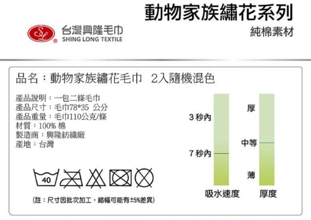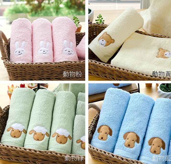 毛圈款.動物家族純棉毛巾 (6條毛巾組)【台灣興隆毛巾製】