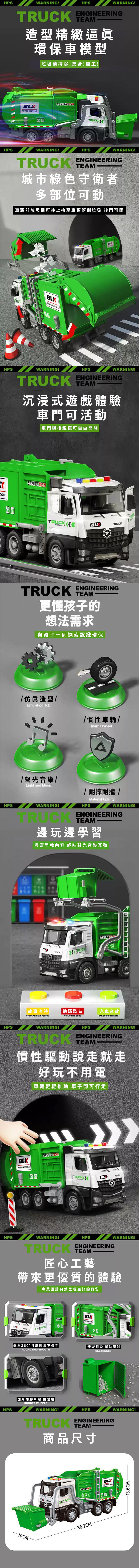 【品名】: 趣味聲光會說故事慣性摩輪環衞車/環保垃圾車(附回收桶/車門後門可開) 【適合年齡】: 3歲以上 【材質】: 塑膠、電子零件(內附鈕釦型電池) 【商品尺寸】:40x23x12.5cm 【重量】:850g 【產地】:中國 【商檢證號】:M33584