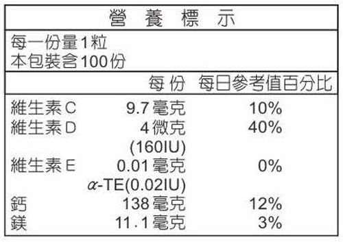 主成分: 愛爾蘭MARIGOT原廠紅藻鈣、胺基酸螯合鈣、酪蛋白磷酸胜肽CPP、葡萄糖酸鎂、維生素C、維生素D3、納豆發酵物(含MK-7維生素K2) 食用方式:每次1粒,每日2~3次 (食品、多食無益) 內容量:每盒100 粒入/盒