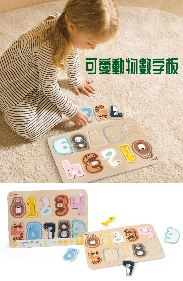 【品名】可愛動物數字板 【主要材質】木頭 【建議年齡】2歲以上 【包裝尺寸】30 x21 x1 公分 【重量】300 公克 【產地】中國 【BSMI】M33851