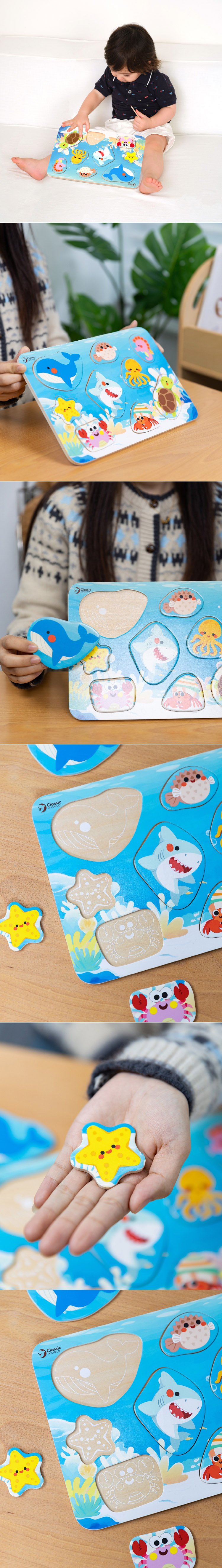 【品名】趣味主題拼板-海洋認知 【主要材質】木頭 【建議年齡】18個月以上 【包裝尺寸】30 x21 x1 公分 【重量】300 公克 【產地】中國 【BSMI】M33851