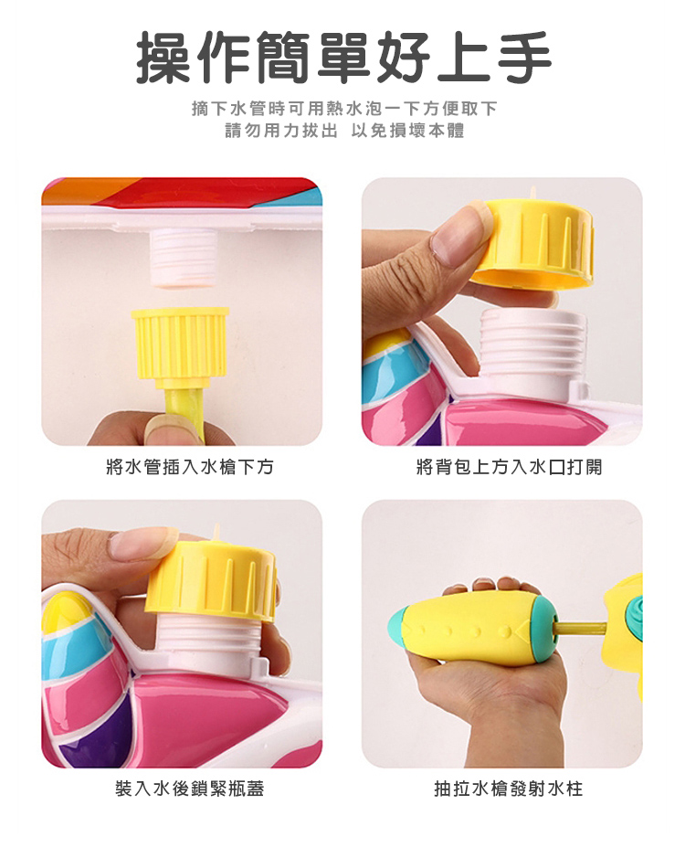 【水槍顏色依進貨批次會有些微變動,請以實際到貨商品為準】 注意事項:遊玩時請勿對準臉部及眼睛噴射,以免發生危險。