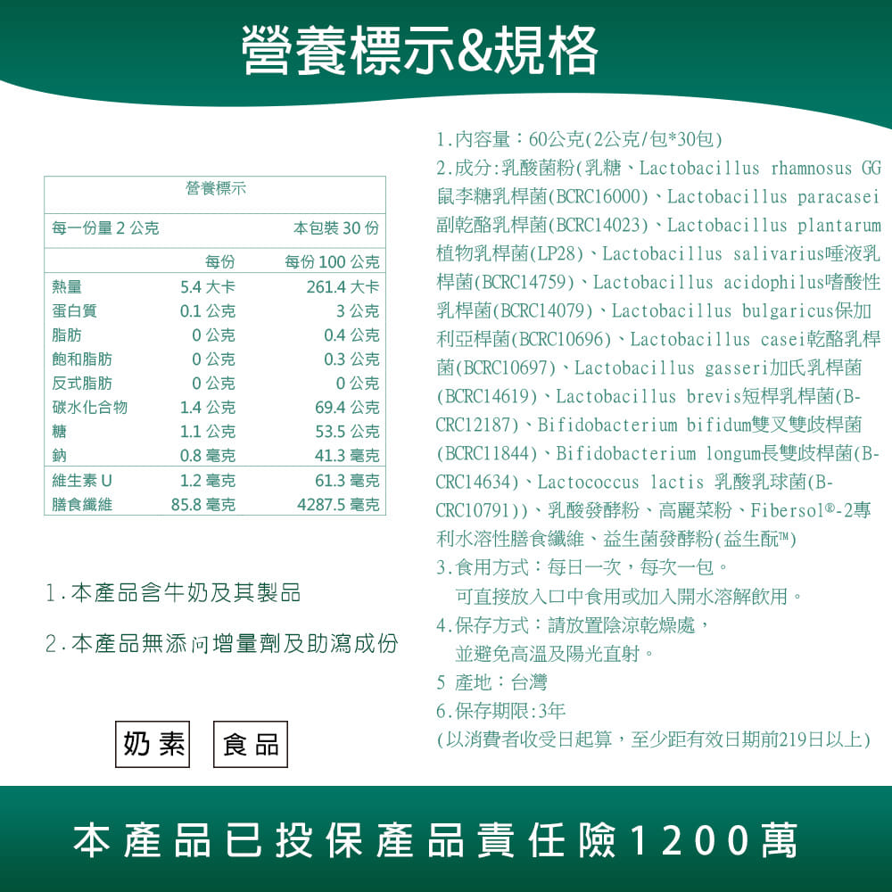 1.內容物規格:2公克/包共30包 2.內容物成分:如圖示 3.商品產地:台灣 4.代理廠商名稱:瀚軒國際貿易有限公司 5.代理廠商電話:02-82451347 6.代理廠商地址:新北市中和區中正路218-7號14樓 7.食品業者登錄字號:F-124728184-00000-9 8.有機認證證書字號:1-010-300946 9.產品責任險字號:新光產物保險13111AKP0000229 10.保存方式:常溫,避免陽光直射(請放至清潔乾燥陰涼處) 11.保存期限:3年(未開封)(以消費者收受日起算,至少距有效日期前219日以上)