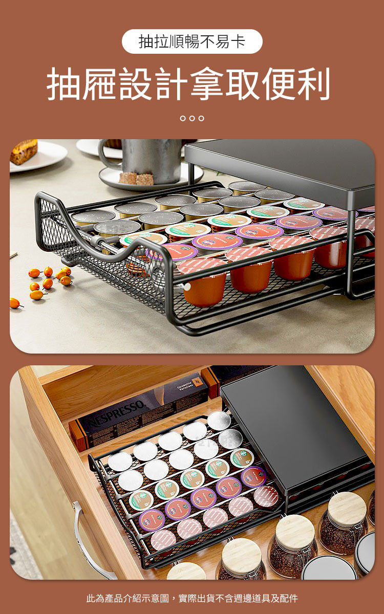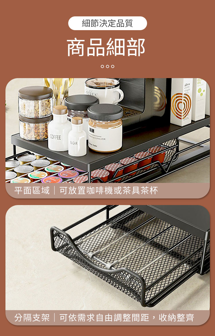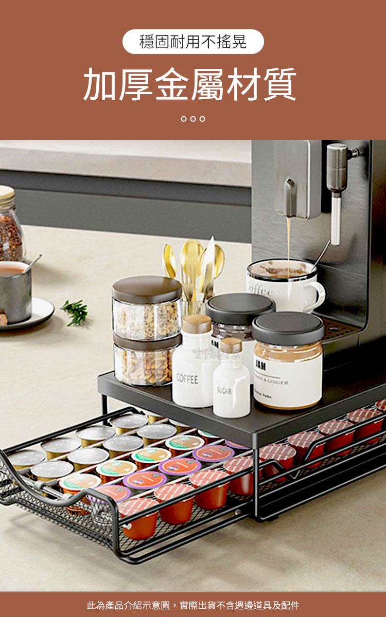 「生活總該有點儀式感!」✨這款咖啡膠囊抽屜置物架,就是為了追求品味的你而生! 將咖啡膠囊、茶具、茶包或配件等整齊收納,讓你在忙碌中享受每一杯咖啡的儀式感,提升生活質感,一秒擁有精品般的香醇角落!🌹☕