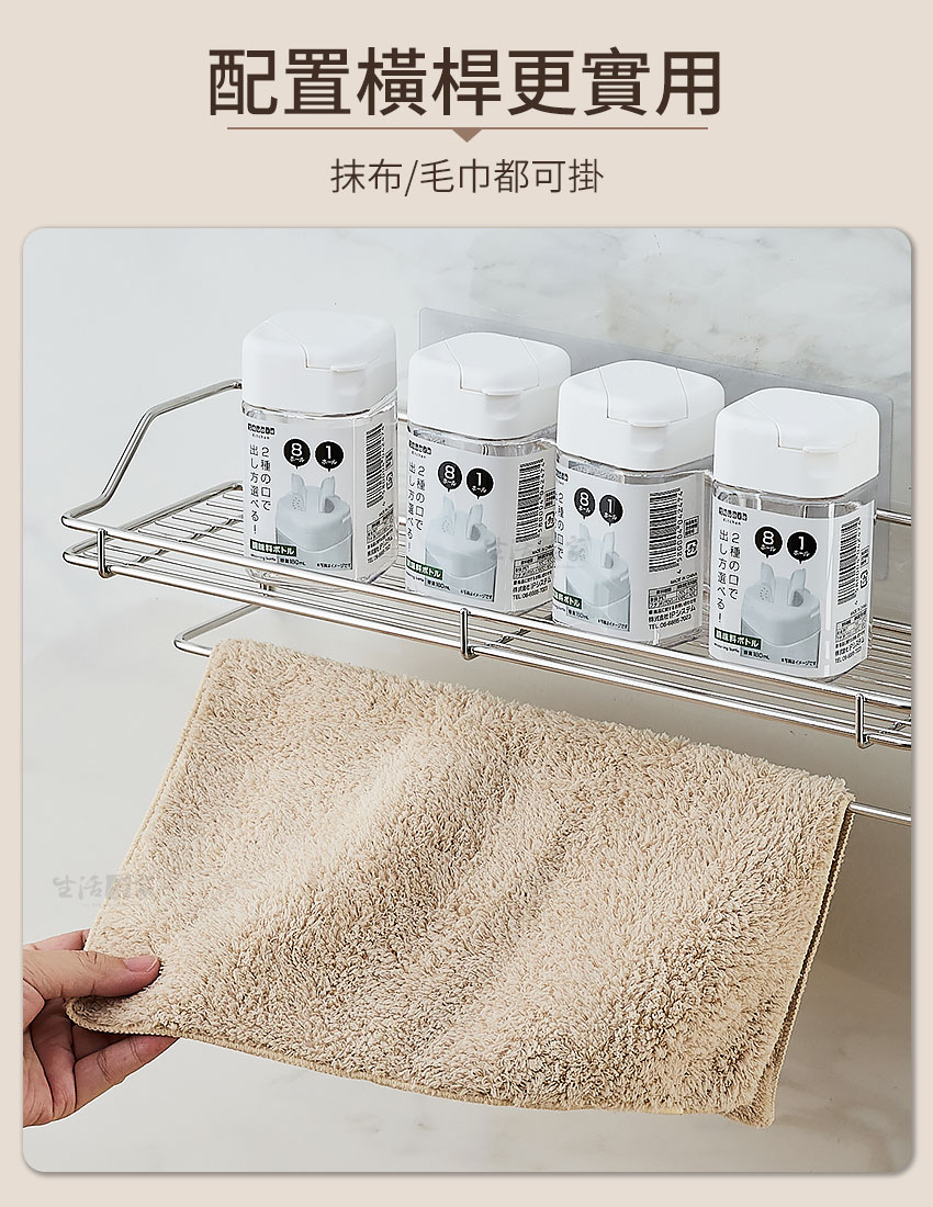 ✅ 橫桿放抹布或毛巾:不僅可以放置瓶罐,還可以掛抹布或毛巾,實在是太貼心了。