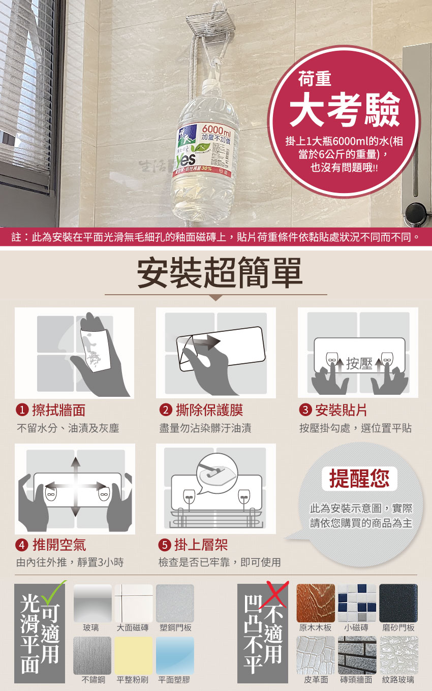 ✅ 光滑壁面黏貼安裝,不打孔不鑽洞:安裝超簡單,DIY完全沒問題,牆壁完全不會被破壞。