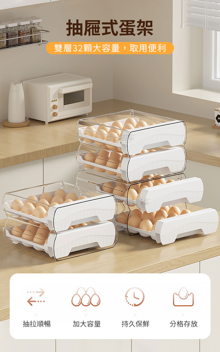 所以能有一個蛋架讓我存放是很方便的!今天要推薦一款超實用的蛋架「抽屜式雙層32顆保鮮雞蛋架」!雞蛋收納和保鮮一步到位,真的很實用!🍳🌟