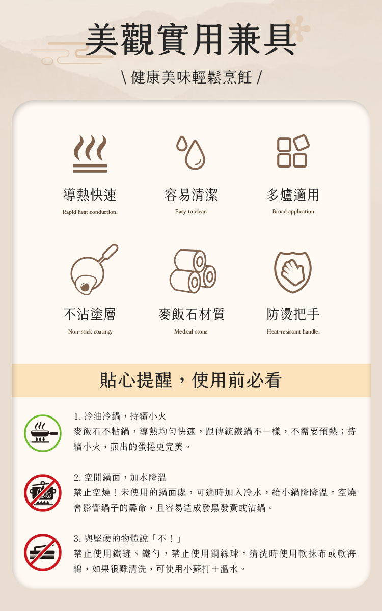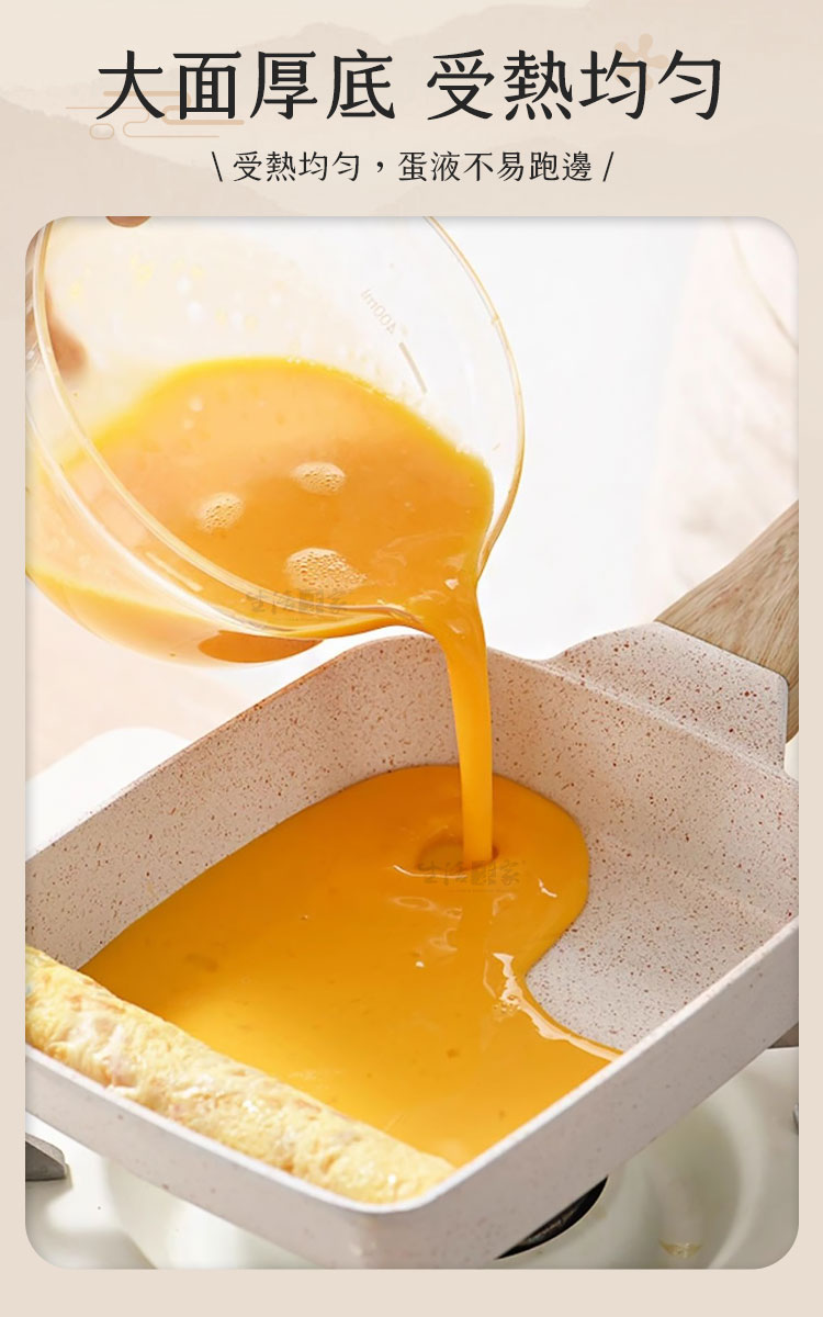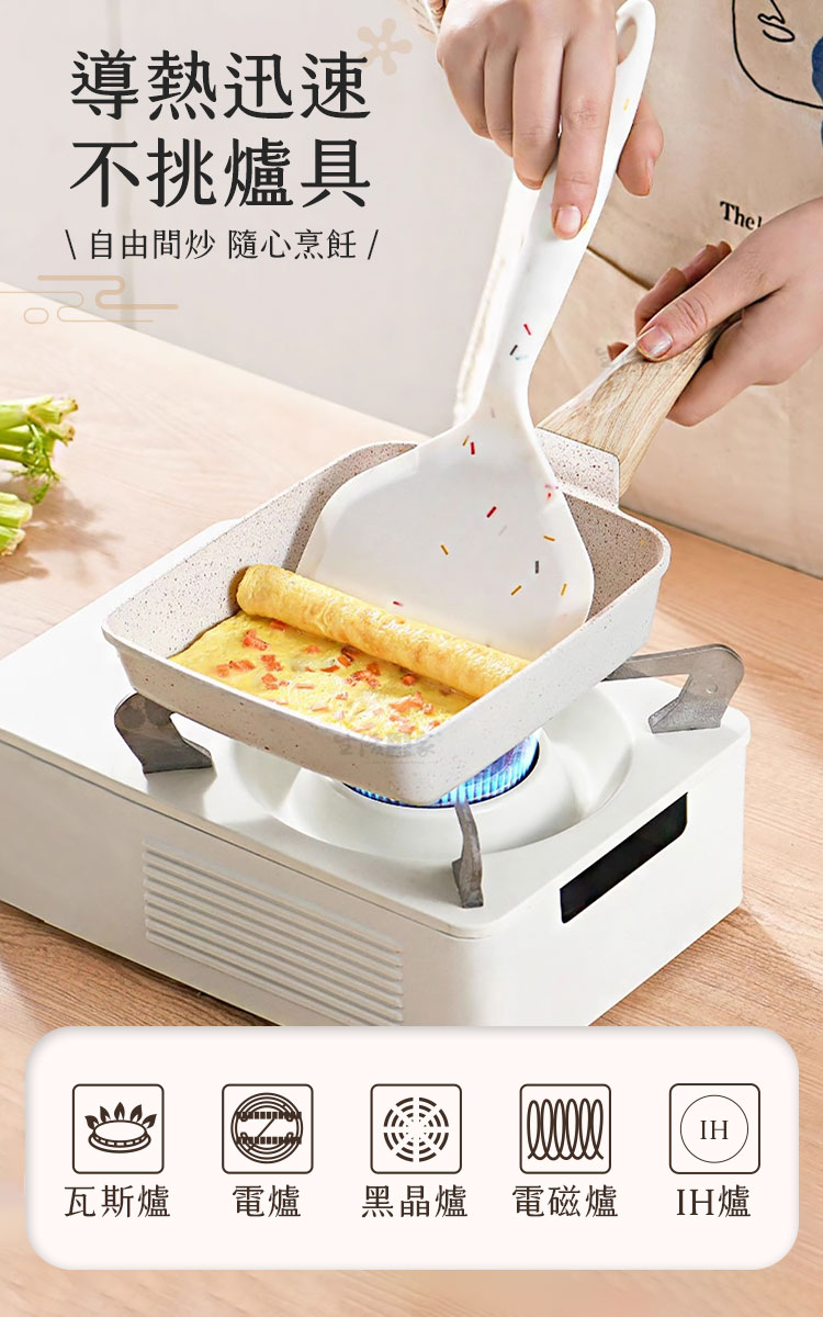 輕巧的長方造型設計,適合少量料理,煎出1-2人份的完美玉子燒,剛剛好的份量,不浪費、不過量。鍋底還搭配導磁複底,不管是瓦斯爐、電磁爐還是黑晶爐,都能完美適應。你只需要拿起鍋鏟,剩下的就交給這鍋來完成。🔥🍲 #導磁複底 #多種爐具適用