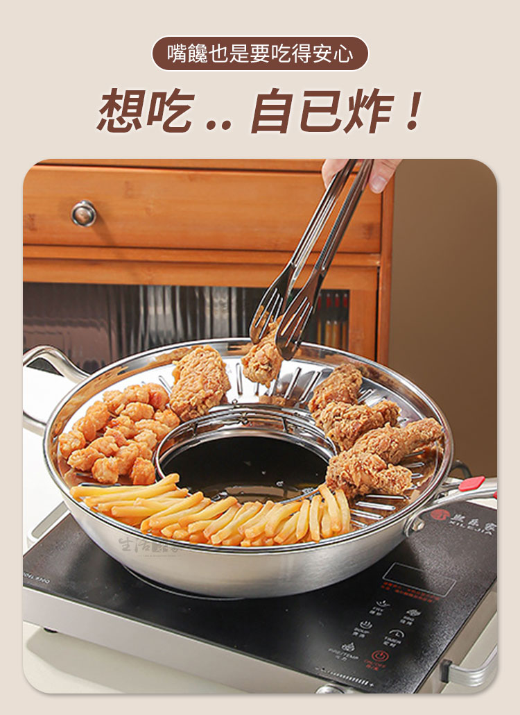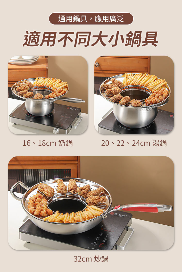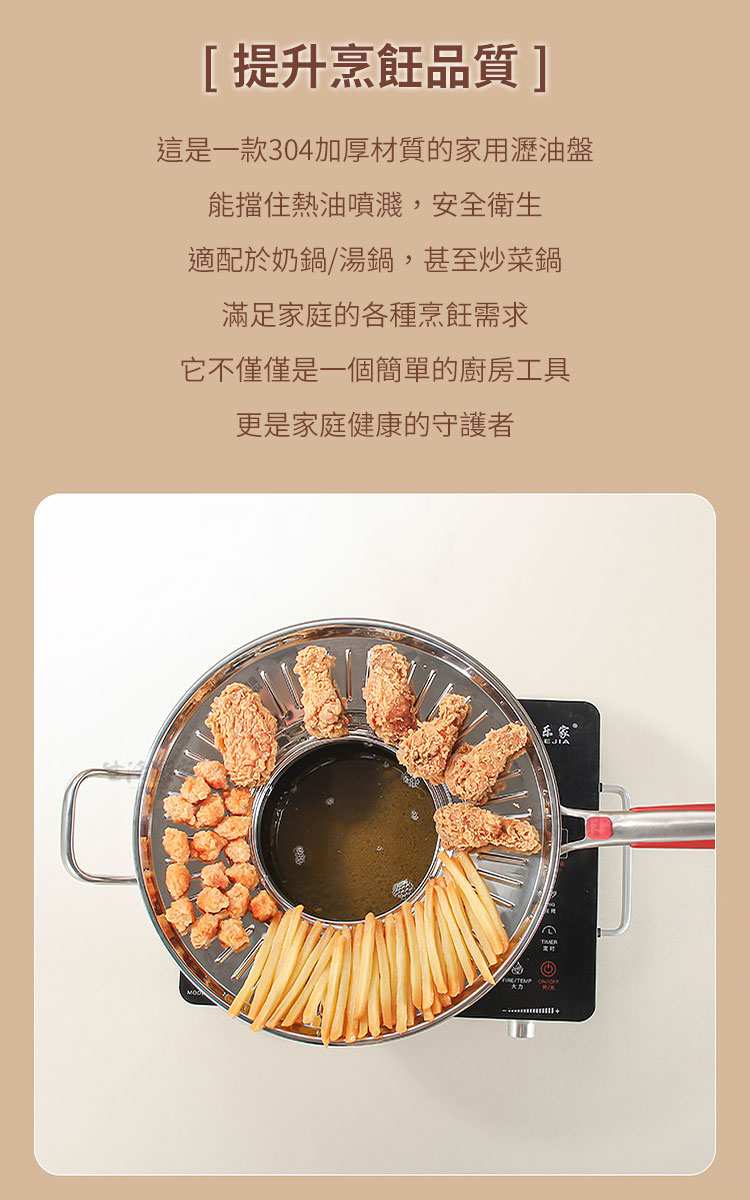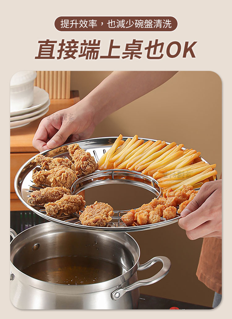 「掌控不了油炸的熱情?錯!那只是少了一個好幫手。」這款瀝油盤,不必擔心炸油滿天飛,只要將它放上鍋具,立刻變身成美味油炸鍋,即刻開炸!🔥隨時隨地擁有高水準的炸物體驗!🍤