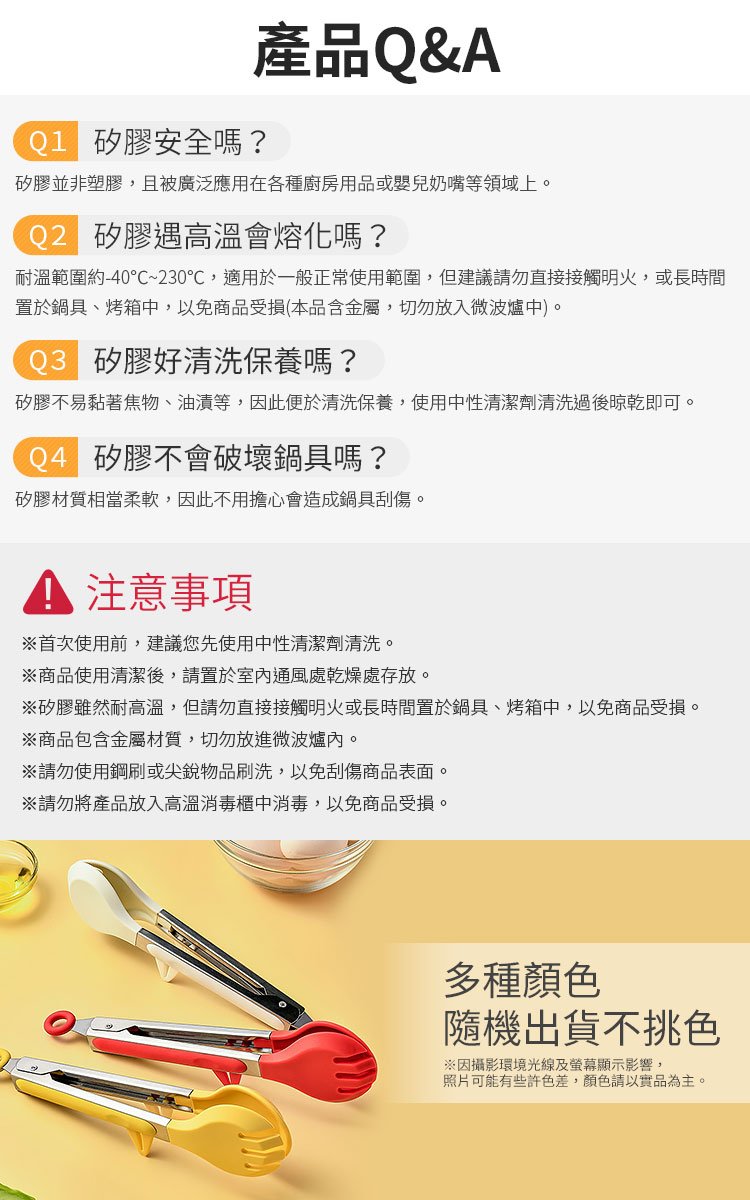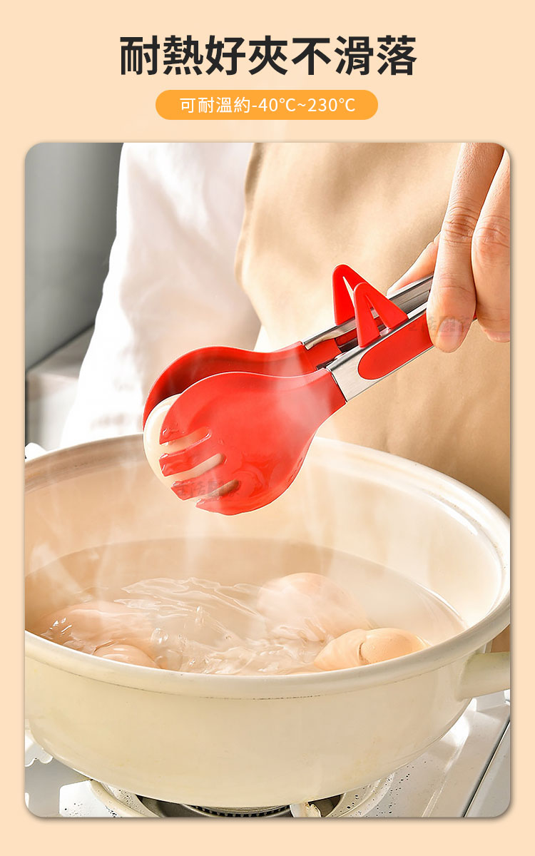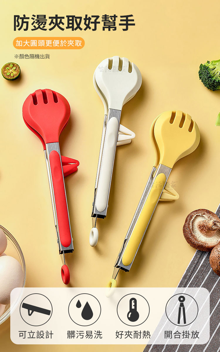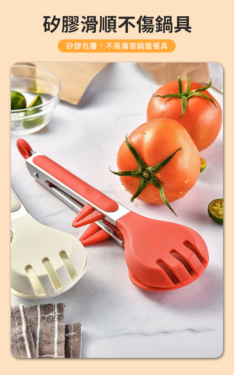 食物夾採用耐熱矽膠製成,不僅好夾不滑落,而且可以有效地防止燙手,讓烹飪過程更加安全和輕鬆!🔥👌 #安全烹飪 #防燙好幫手
