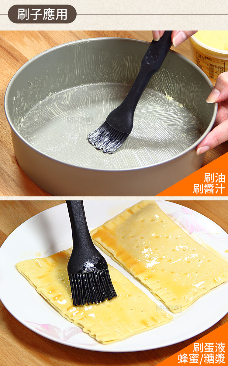 ◆烘焙必備,刷油、刷蜜、刷醬料一次完成。 ◆前邊刷毛矽膠柔軟,來回刷動數次也不會刮傷模具。 ◆獨特的斜口式設計,刷醬時能完整貼合食材,刷動順暢無死角。 ◆矽膠全包覆一體成型,滑順平整,不藏污納垢,長期使用也不會分離。 ◆膠刷內置不鏽鋼骨架,整體堅靭性相對提升,刷動時不會彎曲變形。 ◆矽膠材質不易沾黏,只需以清水清洗即可,乾淨衛生無異味。 ◆適用於家中製作糕點類、麵包類、烘烤點心、餐點等製作工序。