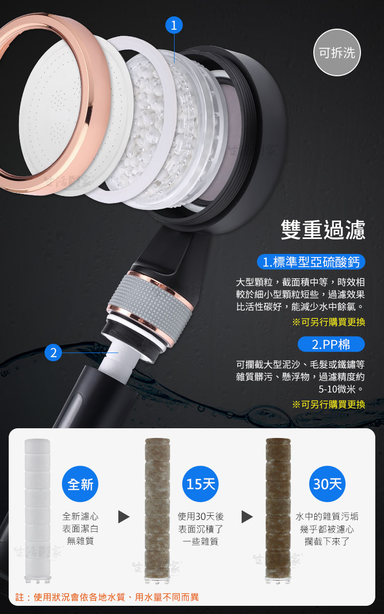 ![]()  ![]() ![]() 適用機種-調節增壓過濾蓮蓬頭#99497、#99498、#60004 ◆集中式水流設計,強制讓水經過每一個角落、濾材有效過濾,增加用水的乾淨度!! ◆高精度PP棉濾心,精度5~10微米,能有效過濾泥沙雜物、鐵鏽、毛屑、懸浮物等! ◆亞硫酸鈣濾心,餘氯吸附量比活性碳多200倍以上,能有效降低水中餘氯。 ◆安裝在花灑裡,減少水中的"氯,才不會在您洗頭髮、沐浴或幫小寶寶洗澡時被人體吸收。 ◆餘氯容易與水中的有機物質混合產生三滷甲烷,可能危害人體肌膚,千萬要注意。 ◆不同地區水質髒污程度不同,建議當PP棉變成深色或水流變小時即可更換濾芯。 ◆SGS檢測餘氯有效過濾值可達95.9%(報告號碼-PX/2021/A0145),真的能有效降低水中餘氯。 ◆SGS檢測重金屬均為未檢出(報告號碼-ABA21B00360),能有效過水中重金屬、雜質等。