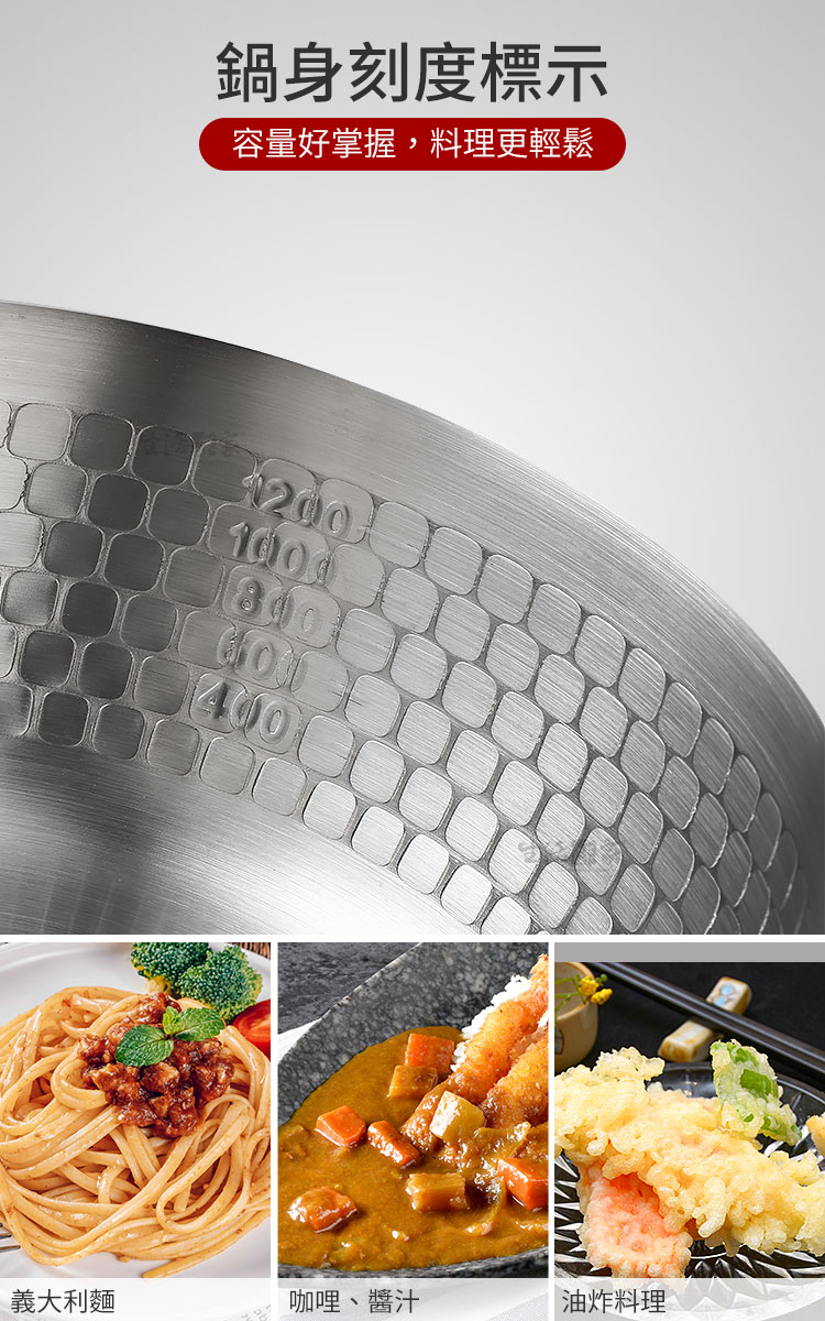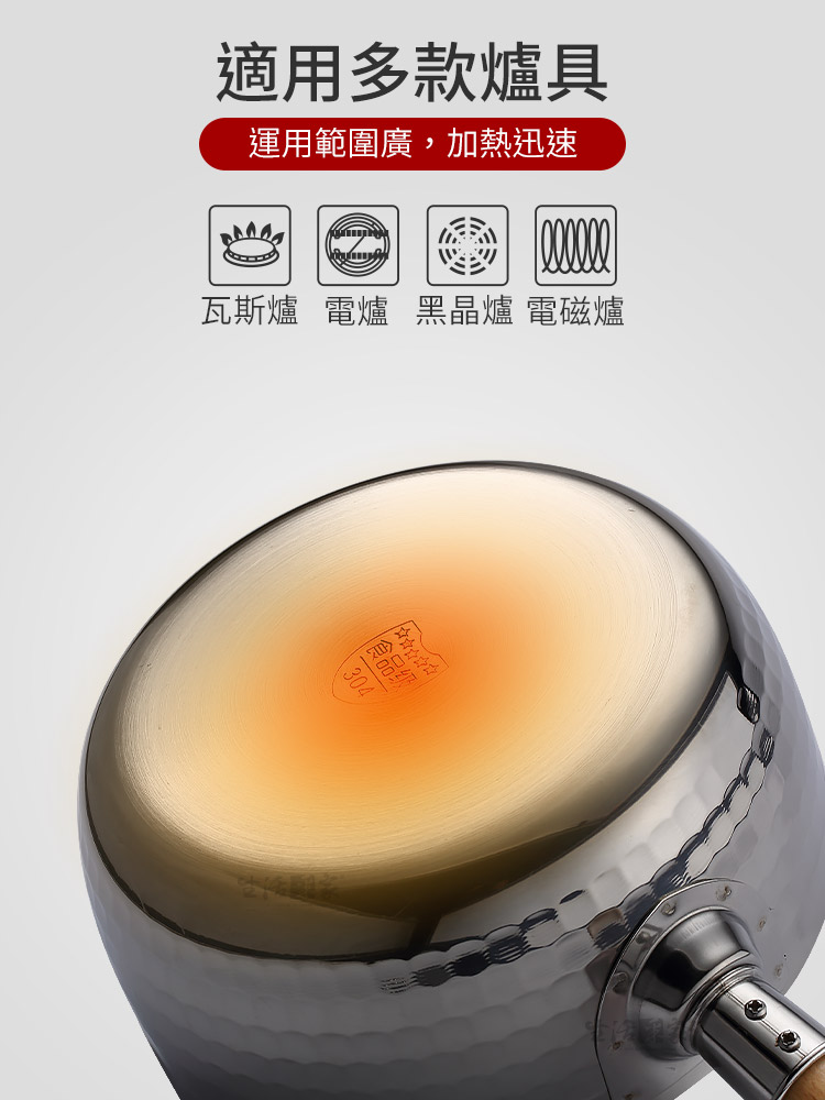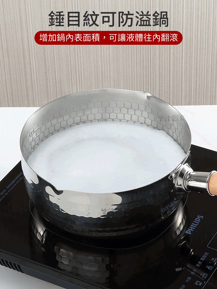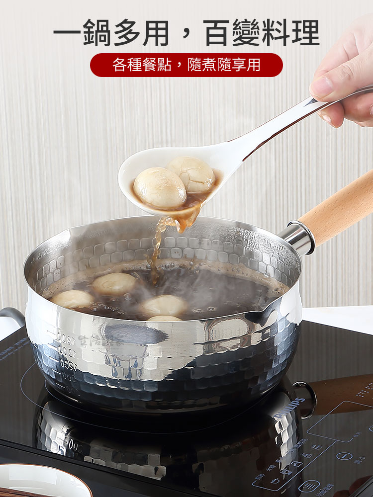 ◆鍋徑:18cm。 ◆材質經SGS檢驗合格,食安沒問題。 ◆煮多煮少,各種尺寸,大小容量剛剛好。 ◆導流嘴出水設計,倒湯、倒麵超方便。 ◆雙邊導流鍋嘴,左手或右手料理都方便。 ◆錘紋鍋身,湯汁沸騰時往內翻滾不易溢出。 ◆木質手把不易燙手,取鍋移鍋單手即可搞定。 ◆輕巧便利,一鍋多用,煮粥煮湯煮麵煮火鍋都行。 ◆鍋身304不鏽鋼材質,耐高溫不易變形,經久耐用。 ◆重量輕盈,起鍋、下鍋、或移鍋都能單手搞定,超好用。 ◆導磁複底不挑鍋,可用於瓦斯爐、電爐、電磁爐、黑晶爐、IH爐等。