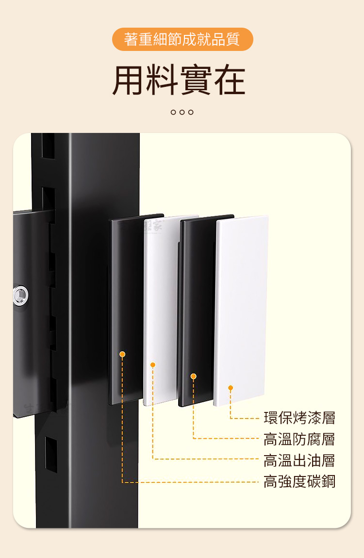 碳鋼材質堅固耐用,承重能力非常好,我可以把各種大小的廚房用品都放上去,放好放滿完全不用擔心會塌陷!💪🏼💼 #穩固承重 #安心使用
