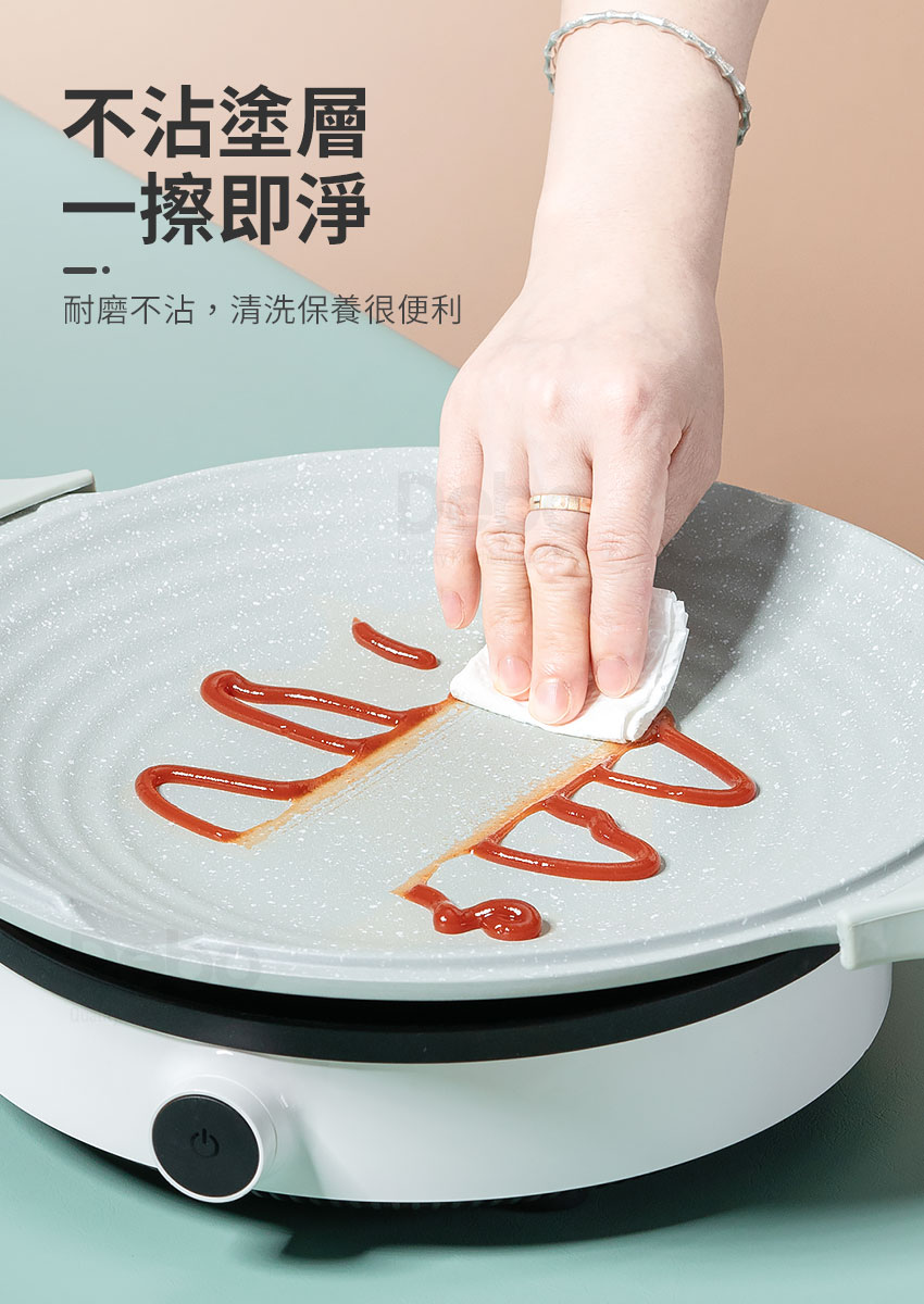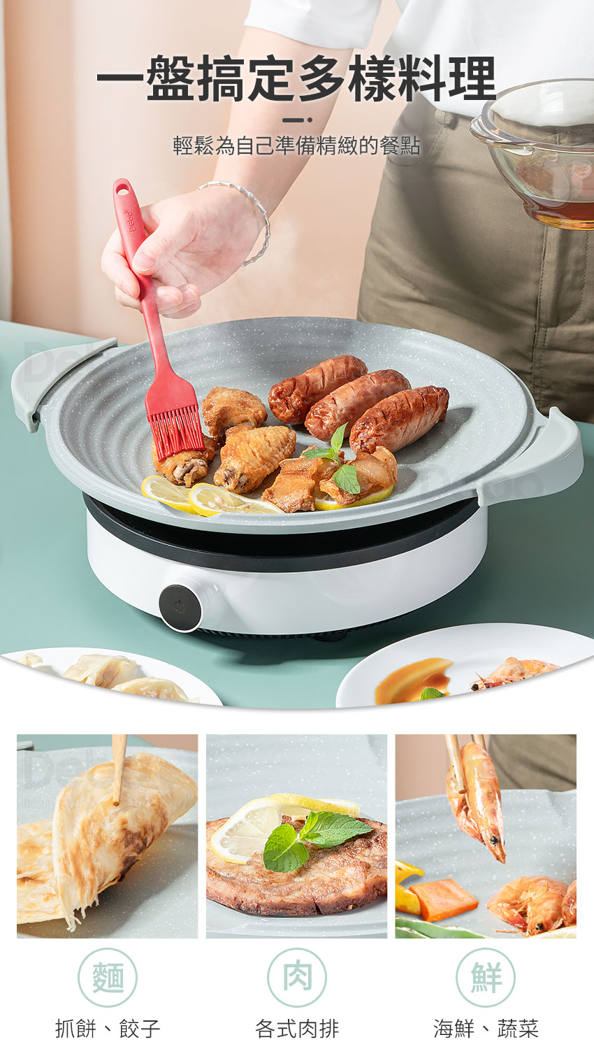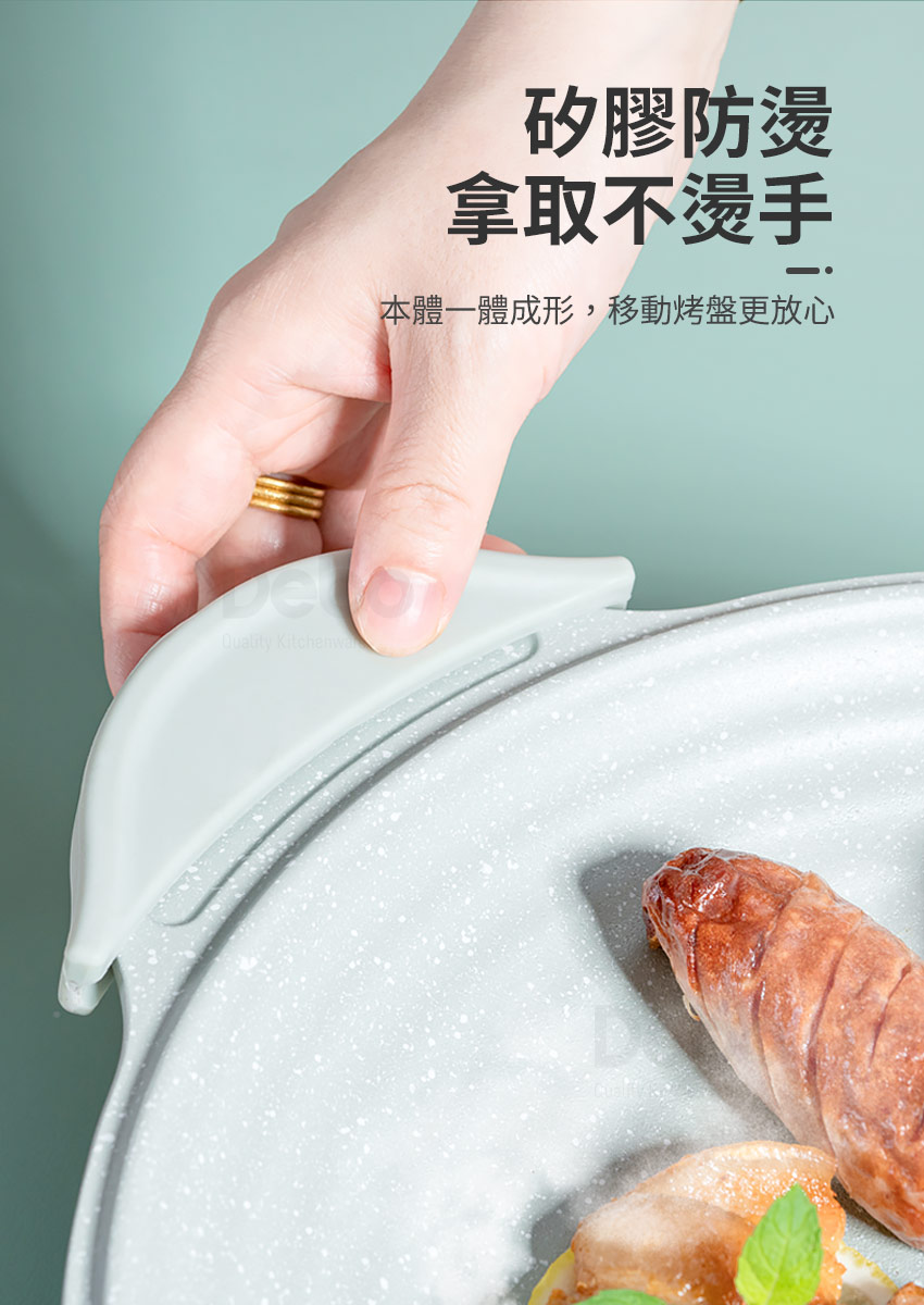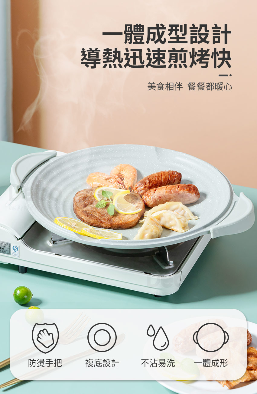 ◆美味營養,烤盤燒烤熱能平均滲透,使肉質裡外柔軟,保持原味、湯汁鮮美。 ◆使用前先塗抹些許奶油或食用油,烤肉更香,清洗更容易,又可保護烤盤表面。 ◆盤面不沾,燒烤時食材不易沾黏;雙邊導流嘴設計,湯汁倒出超方便。 ◆採用直徑32cm大盤面,讓您燒烤時可放更多的食材,絕對滿足您的味口。 ◆牛肉、豬肉、羊肉、雞肉、蝦子、干貝、魚類、小玉米、花椰等蔬菜都適用。 ◆導磁複底設計,適用電磁爐、IH爐、黑晶爐、電爐、休閒爐、瓦斯爐等。 ◆重量輕盈,方便攜帶,露營、家裡都可烤,現烤現吃用口感鮮嫩,新鮮又衛生。