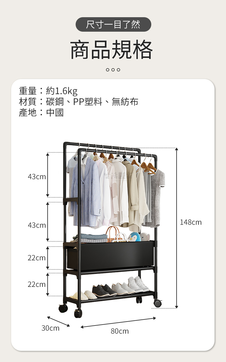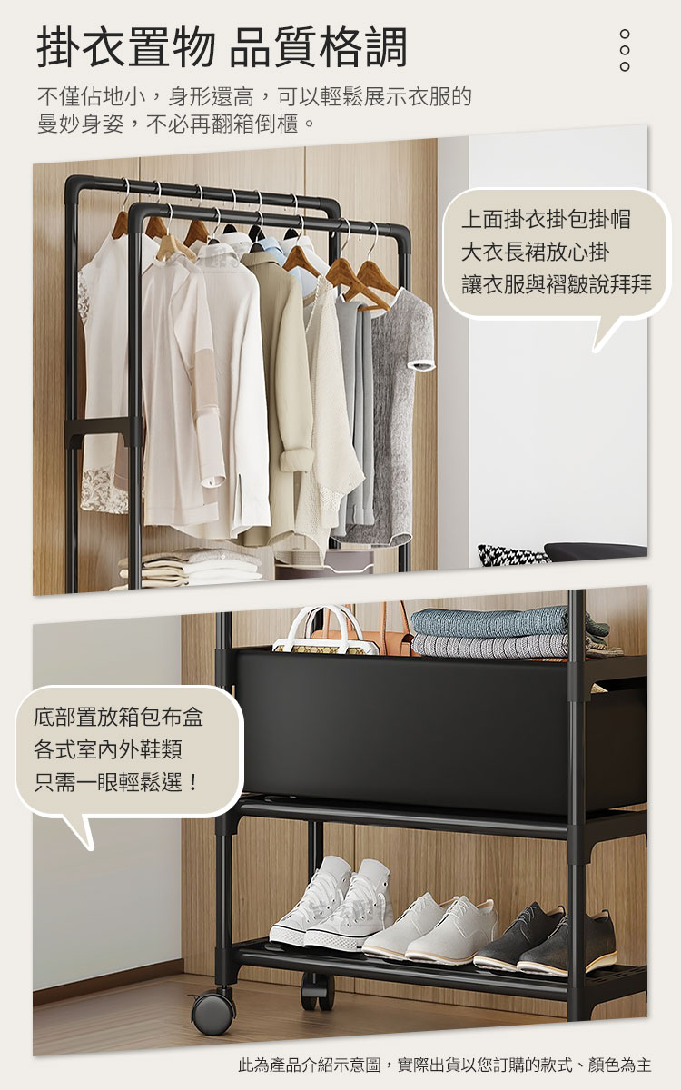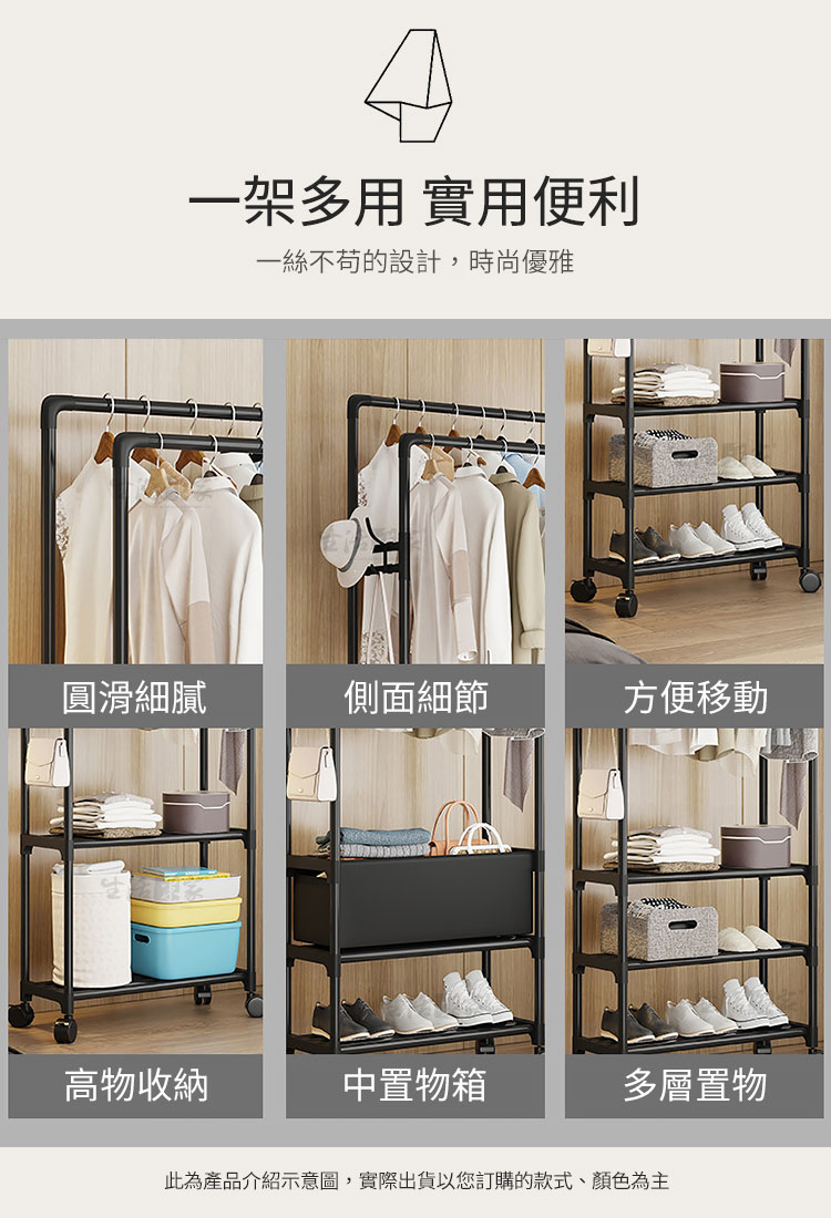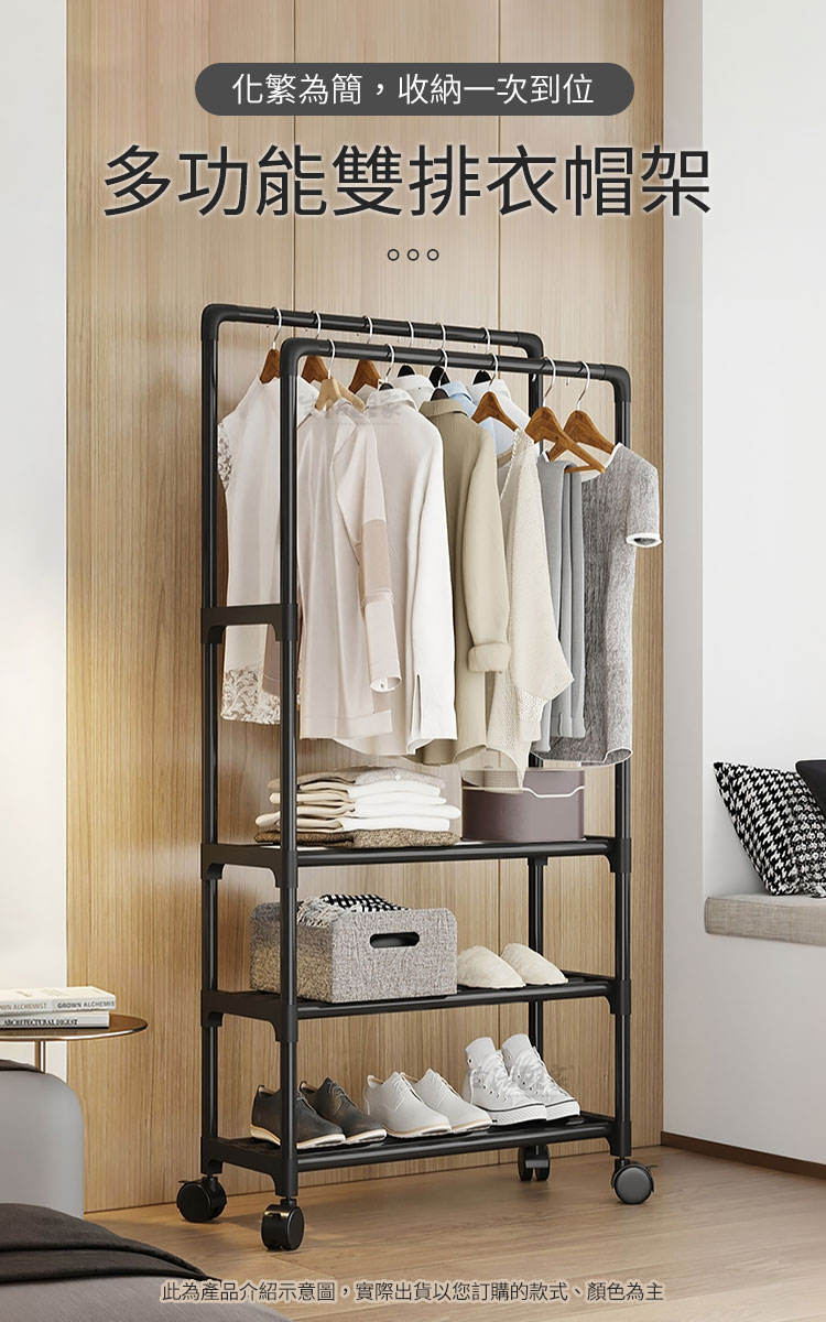 最貼心的是,它還配有「滑輪」,日常移動或地板清潔,分分鐘手到擒來。「加粗鋼管」設計,承重力佳,掛放再多的衣服或鞋子都完全沒問題。💪🧥