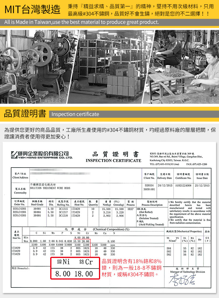 台灣自製優良商品又來了,外銷國外的優質商品,現在有機會在國內就可以買到了!! 擁有二十幾年外銷經驗,商品深受歐美日等地區肯定,堅持不用次級材料,只選用正統高級#304(18-8)不鏽鋼,品質好不會生鏽,絕對是您的不二選擇!!