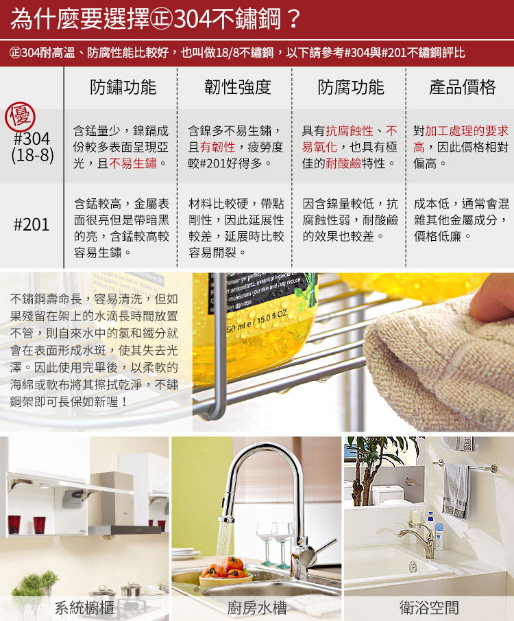 ※SUS304材質,可抗日曬無遇水生鏽問題,SUS304為同質產品最高規格材料,一般不標示材料序號的坊間產品大多是以SUS201或較低階不鏽鋼材所生產的唷~