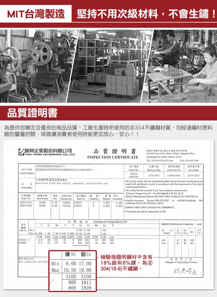 台灣自製優良商品又來了,外銷國外的優質商品,現在有機會在國內就可以買到了!! 擁有二十幾年外銷經驗,商品深受歐美日等地區肯定,堅持不用次級材料,只選用正統高級㊣304(18-8)不鏽鋼,品質好不會生鏽,絕對是您的不二選擇!!