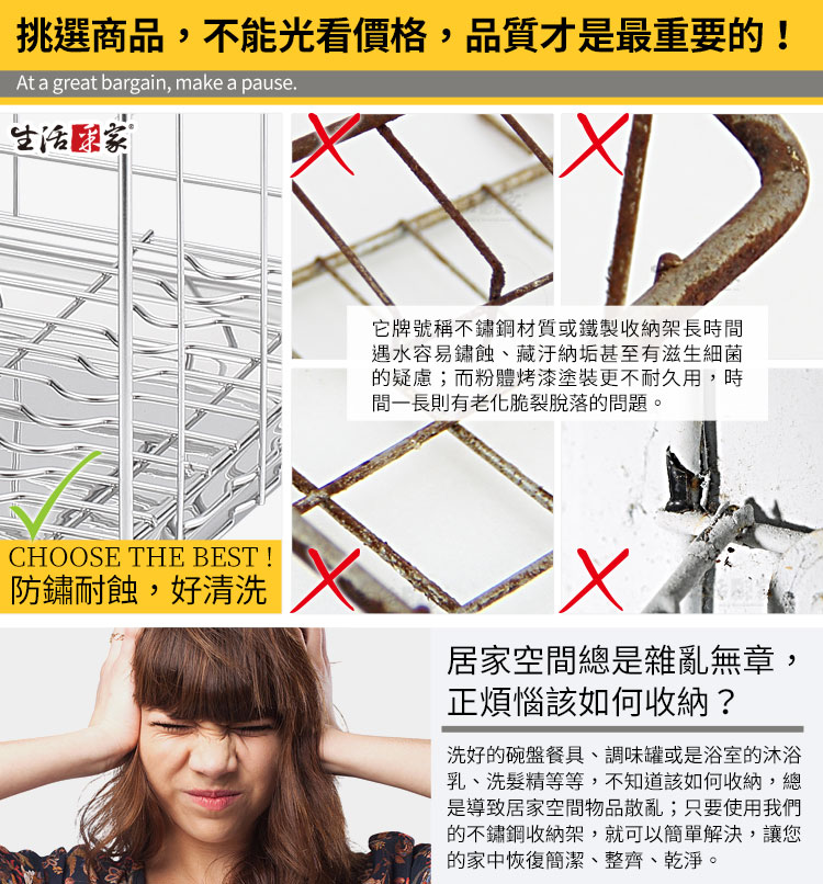 採SUS304 (18-8)高品質不鏽鋼製造,無生鏽疑慮,為同質性產品能找到的最高使用材料等級 ,製造商為已有二十多年經驗的外銷廠商,品質保證。