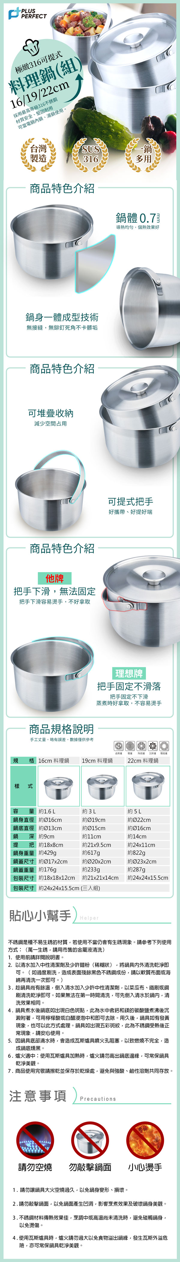 22cm(約5L)【SJ-1040022】4716369329596 材質:鍋身-316不銹鋼、鍋蓋-304不銹鋼 產地:台灣
