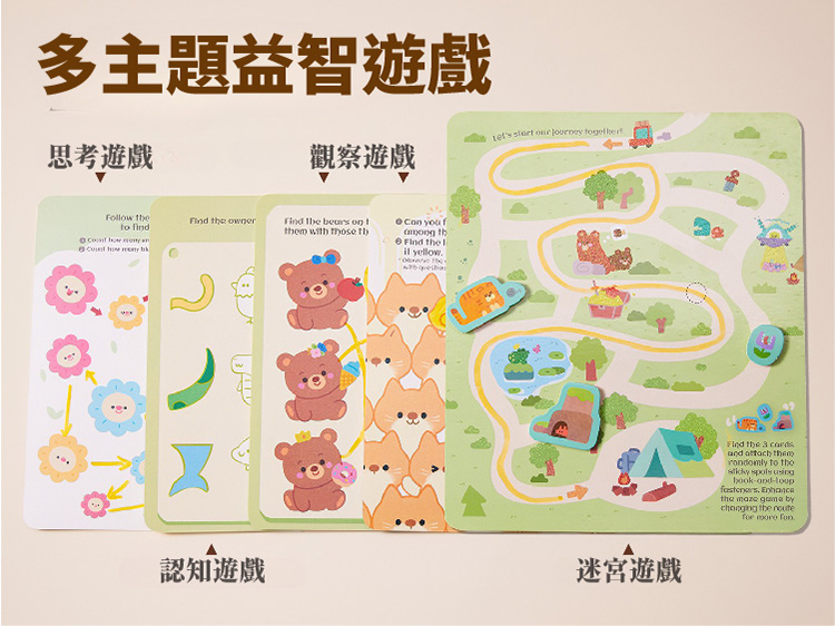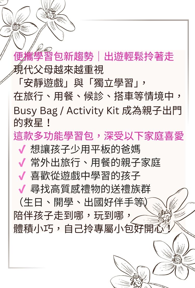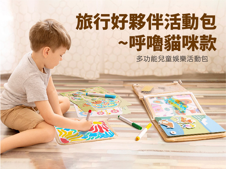 【品名】旅行好夥伴活動包-呼嚕貓咪款(多功能學習遊戲便攜包) 【材質】紙、塑膠 【年齡】3歲以上 【小包尺寸】18x21x3.5(裝滿厚度可達5公分) 【重量】360公克 【產地】中國