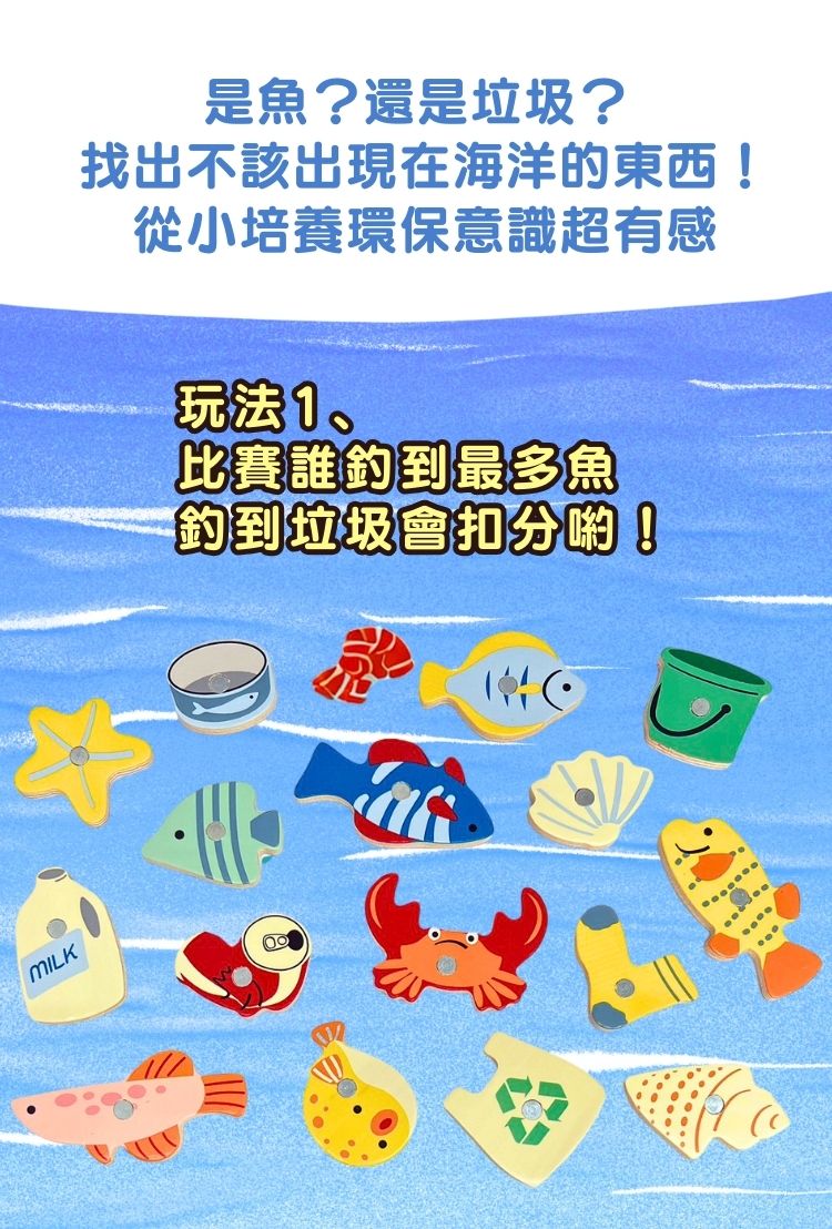 【品名】環保海洋釣魚樂/木製磁性釣魚遊戲(附收納袋/學習卡) 【主要材質】木頭 【年齡】2歲以上 【包裝尺寸】20.5x23.5x3 公分 【商品重量】200 公克 【產地】中國 【BSMI】M33851