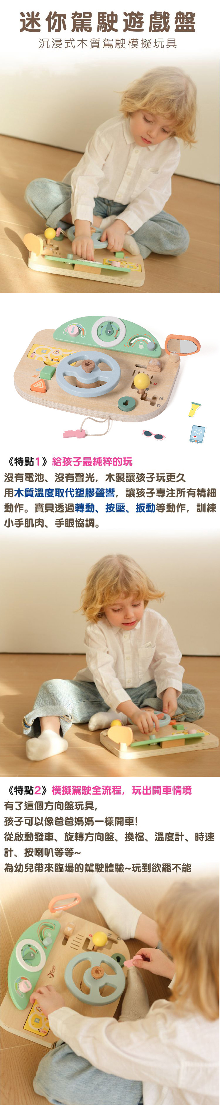 木製設計無聲光,玩得更專注 寶寶透過轉、按、扳練小手肌肉 從發動、轉向、換檔,完整駕駛流程超擬真 一邊開車一邊講故事,玩出想像力+表達力 自由扮演小司機,打造自己的冒險地圖! 通過歐盟CE認證/英國UKCA認證優質玩具 👶適合2歲以上寶貝