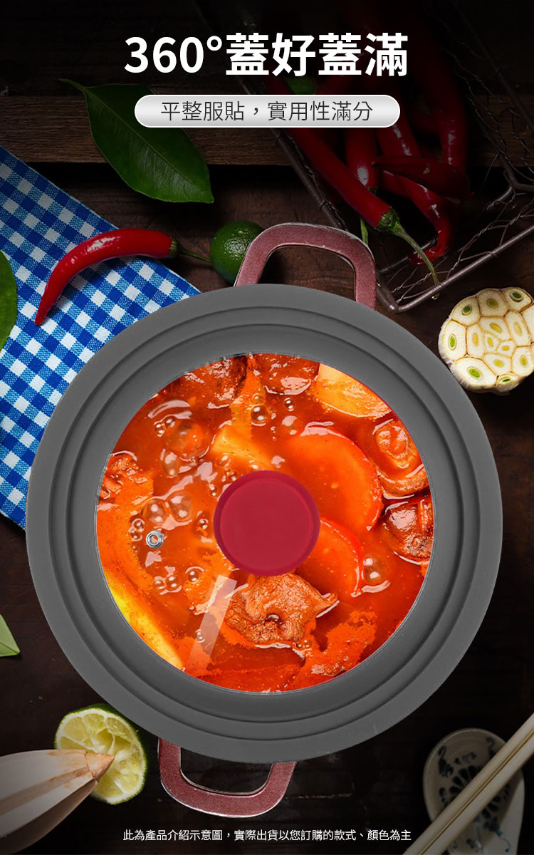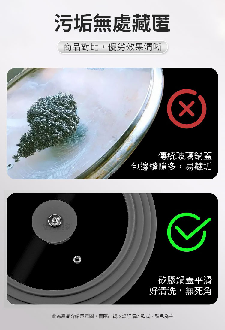 🔹 好清潔,不藏污納垢 以前的鍋蓋縫隙總是容易卡髒東西,這款鍋蓋的一體成型矽膠圈完全沒有這個困擾!油汙沖一下就乾淨,真的超省事!