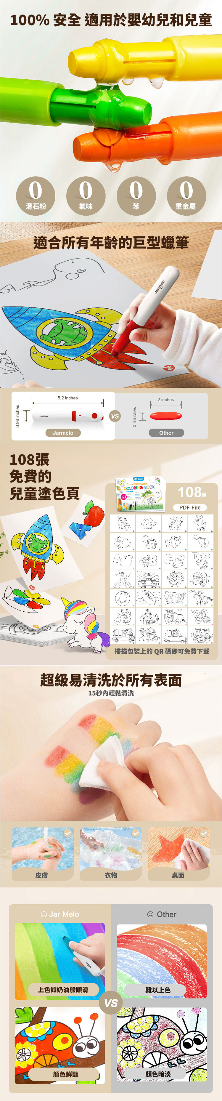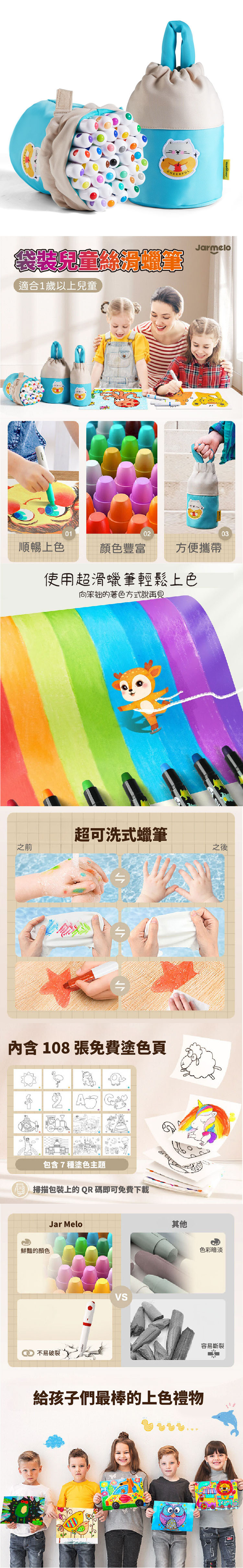 厚實材質往下一折即是筆筒,好取好收 如牛奶一般絲滑流暢 旋轉筆身/安全/色豔/絲滑/可水洗 綠色原料,歐盟/美國AP雙認證 生產安全/認證安全/設計安全