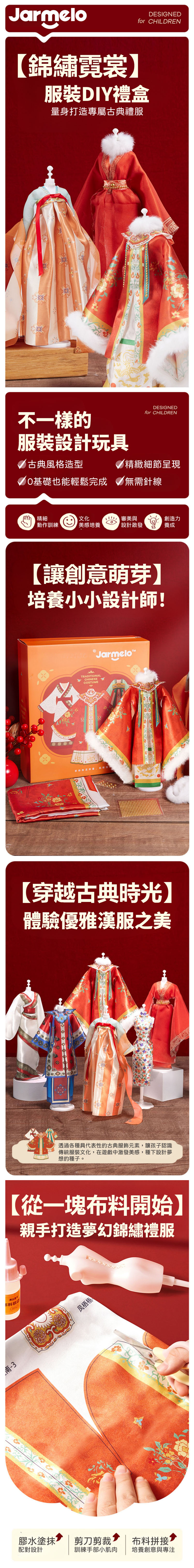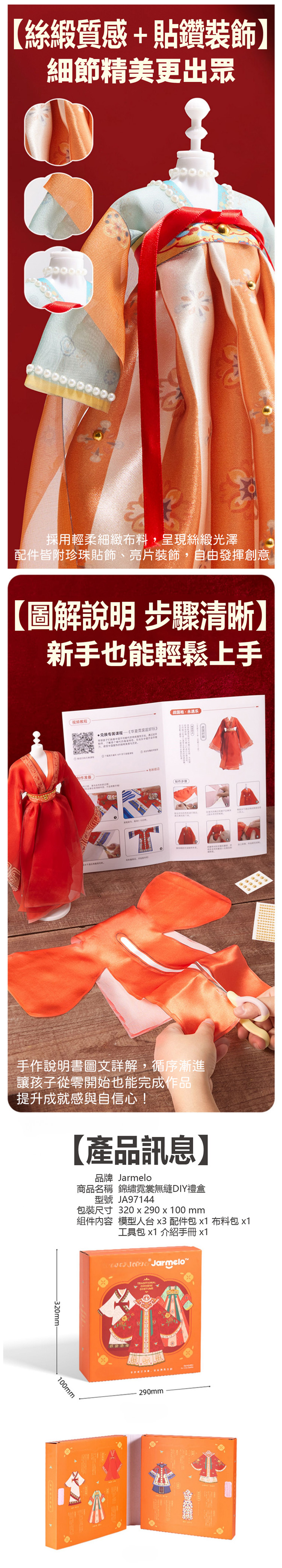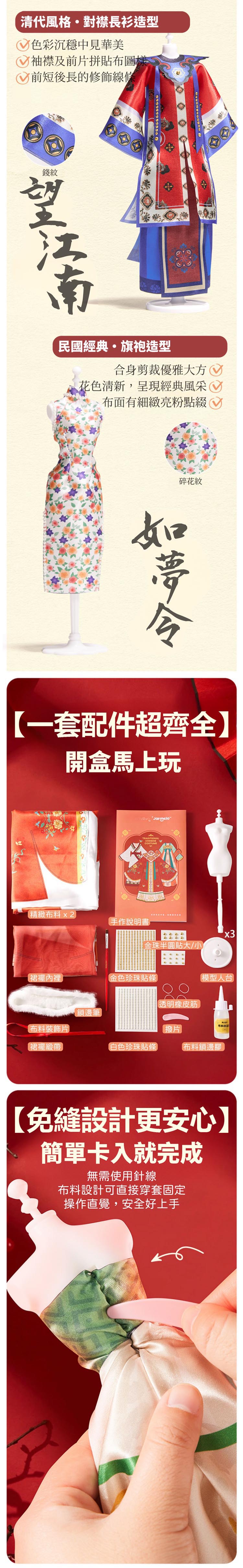 【品名】錦繡霓裳無縫DIY禮盒(含6套服飾材料) 【材質】布、塑膠 【年齡】3歲以上 【尺寸】32 x29 x10 公分 【重量】750公克 【產地】中國 【安全標章】CE, AP 【BSMI】M33851