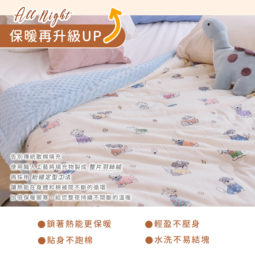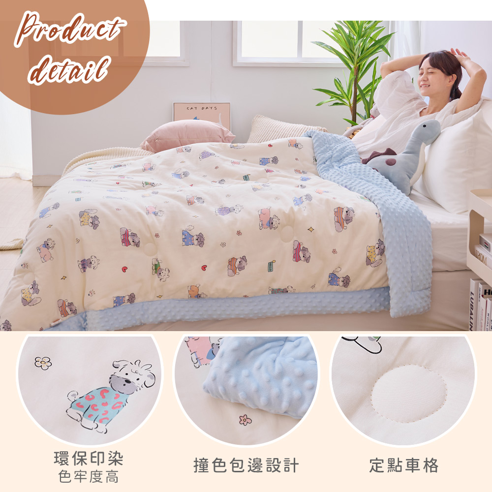 ◇商品規格 ▪ 內容物:Heat Fi 可水洗韓系純棉豆豆絨被x1 ▪表布A面:100%純棉(200織精梳棉) ▪表布B面:100%聚酯纖維(3D立體豆豆絨) ▪填充物:20%大豆纖維+80%聚酯纖維(羽絲絨) ▪ 尺寸: 150x200cm (±5%) ▪ 重量: 2.3KG(±3%) ▪ 產地:中國 ◇注意事項 ▪ 洗滌方式:30度可水洗/不可漂白/不可熨燙/不可烘乾/不可乾洗 ▪ 清洗時,請勿將洗劑直接倒於布料上,且確保清潔劑完全溶解於水中再放入,以免造成布料褪色 ,洗後置通風處自然陰乾即可。 ▪ 洗滌時,以低溫柔洗模式機洗,請務必使用洗衣袋,切勿使用衣物柔軟精、漂白劑、香氛劑洗滌,商品會導致顏色不均或嚴重褪色。 ▪ 個人衛生用品,如經拆封使用、下水洗滌、沾染各種氣味或拆解以致缺乏完整性及失去再販售價值時,恕不接受退換貨 。 ▪ 本商品不含拍攝道具,請以「產品內容」為主。 ▪ 網頁圖片因拍攝關係,與實品略有差異,實際顏色以出貨商品為準。